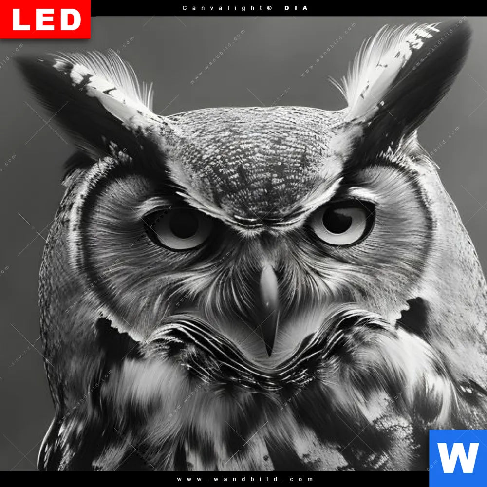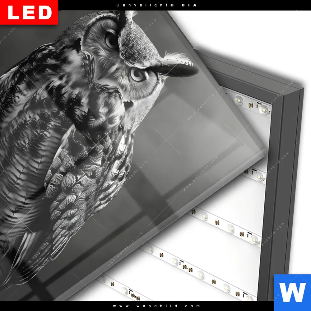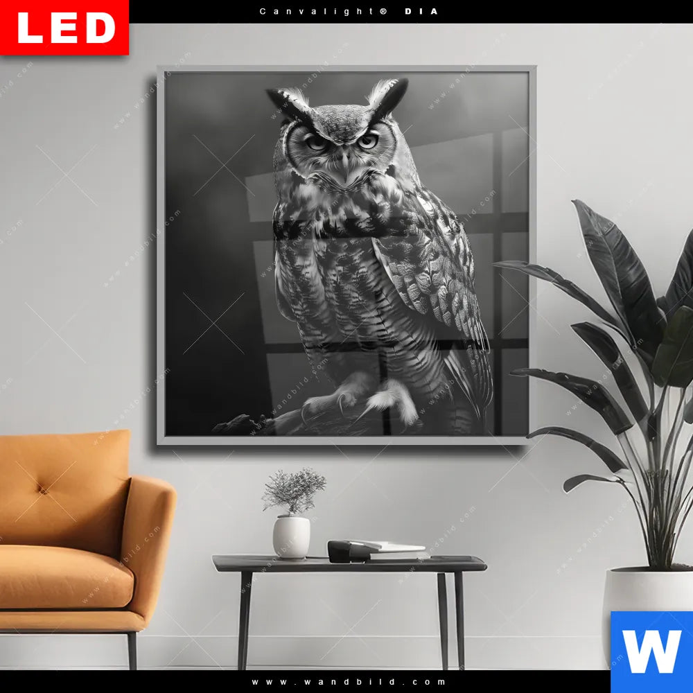 Wechselmotiv Acrylglas Canvalight® DIA | Düstere Eleganz der Eule | Quadrat