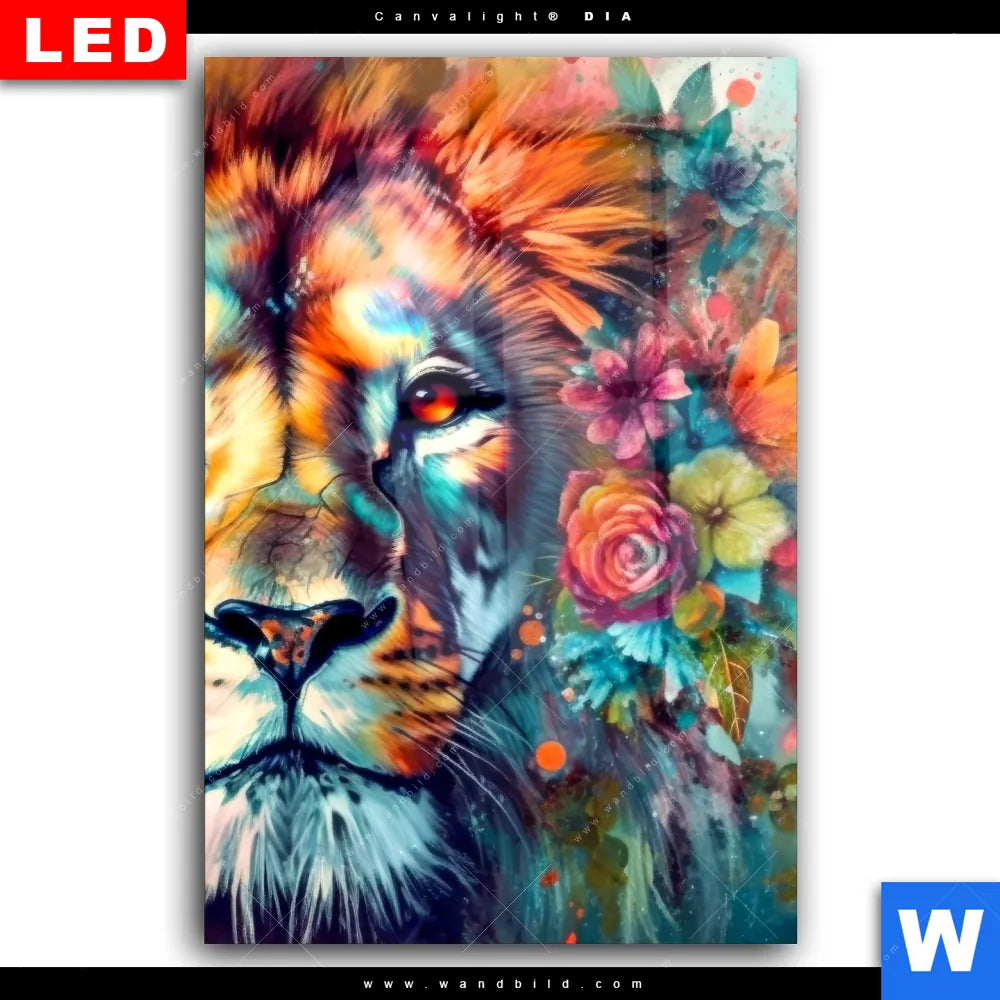 Wechselmotiv Acrylglas Canvalight® DIA | Floraler Löwe | Hochformat