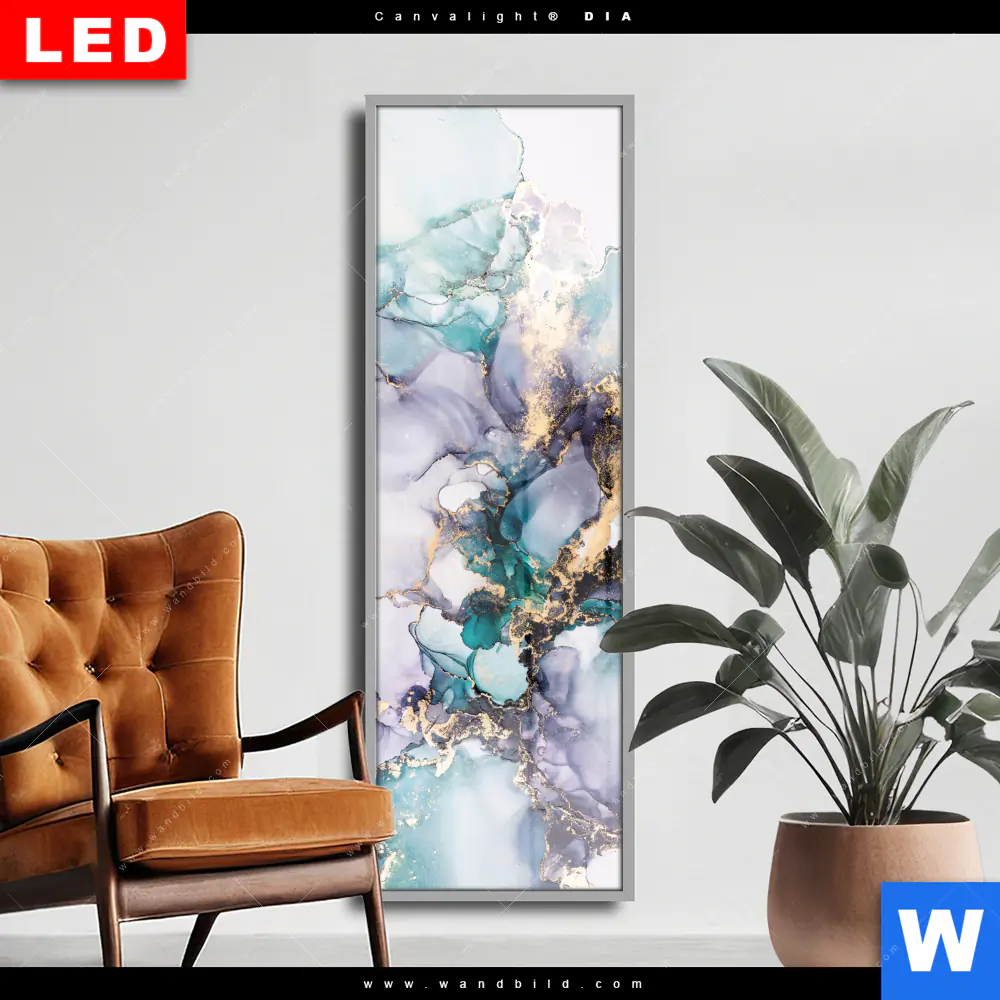 Wechselmotiv Acrylglas Canvalight® DIA | Fluid Art Lila & Türkis | Schmal