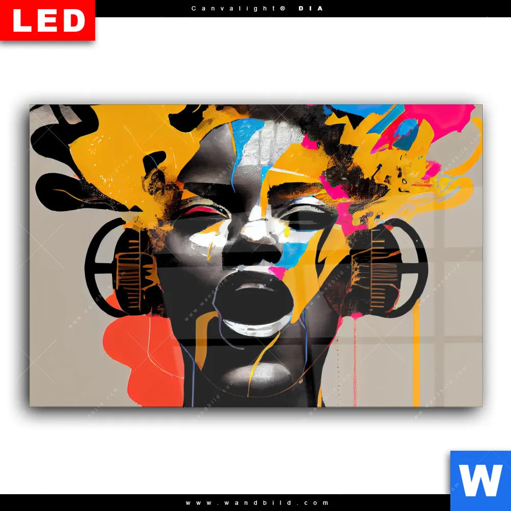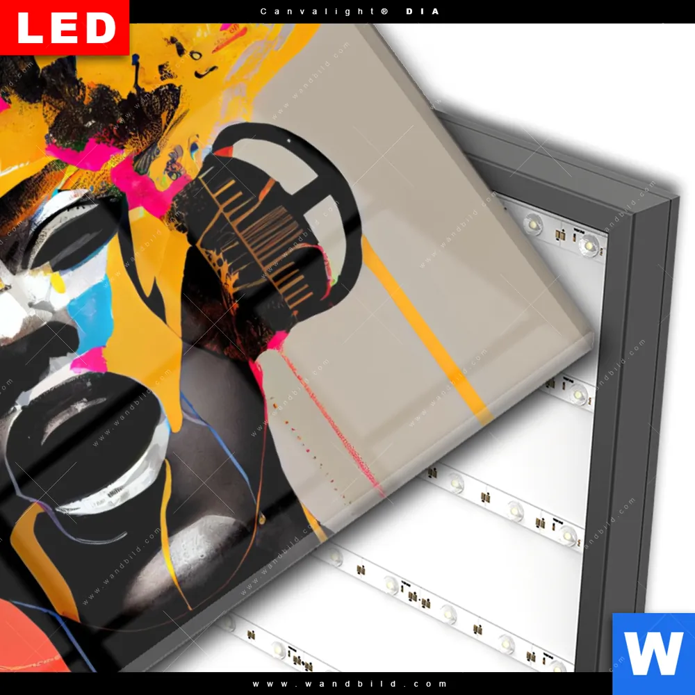 Wechselmotiv Acrylglas Canvalight® DIA | Frau mit Kopfhörern | Querformat