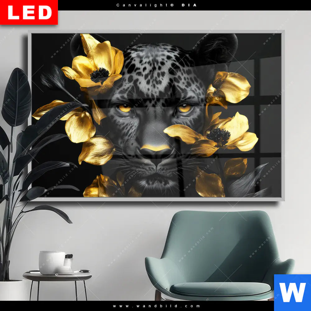 Wechselmotiv Acrylglas Canvalight® DIA | Goldblumen & Panther | Querformat