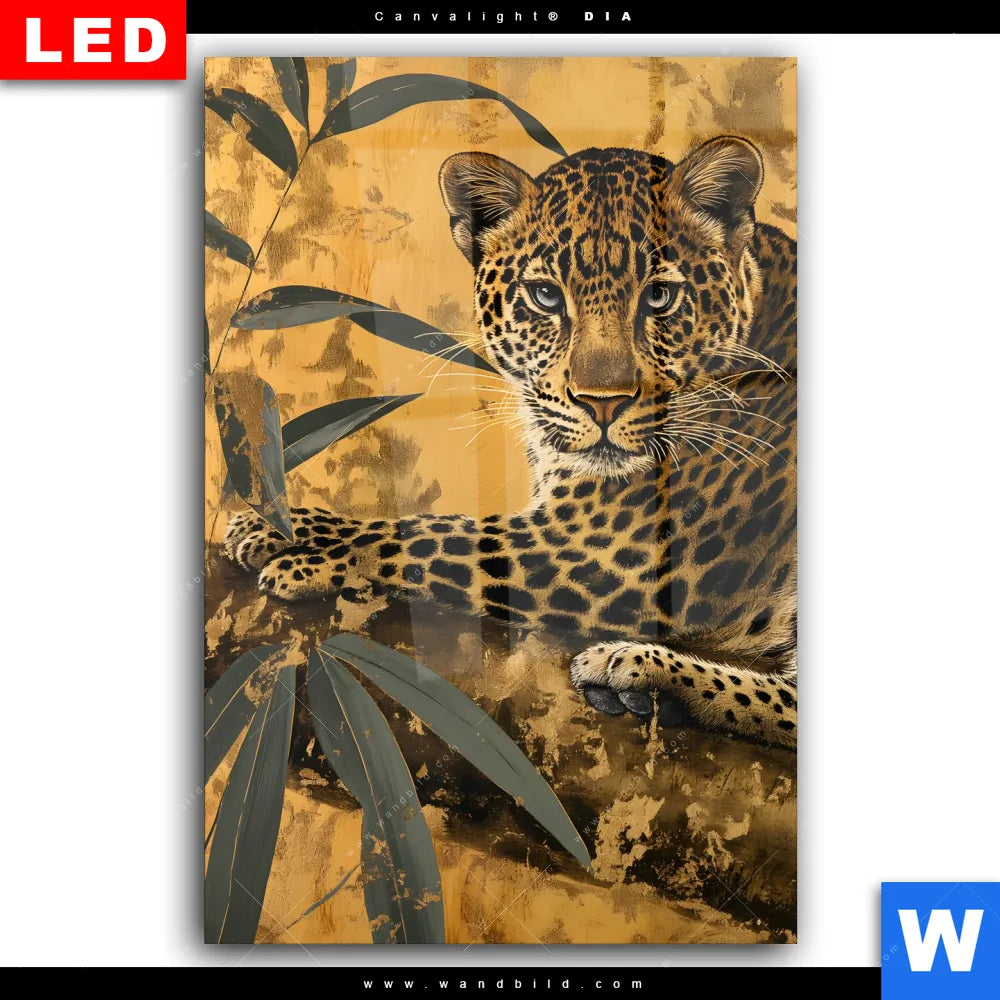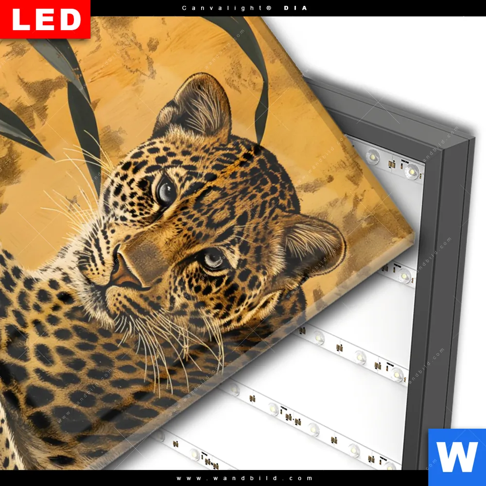 Wechselmotiv Acrylglas Canvalight® DIA | Goldener Leopard - Imposanter Jäger | Hochformat