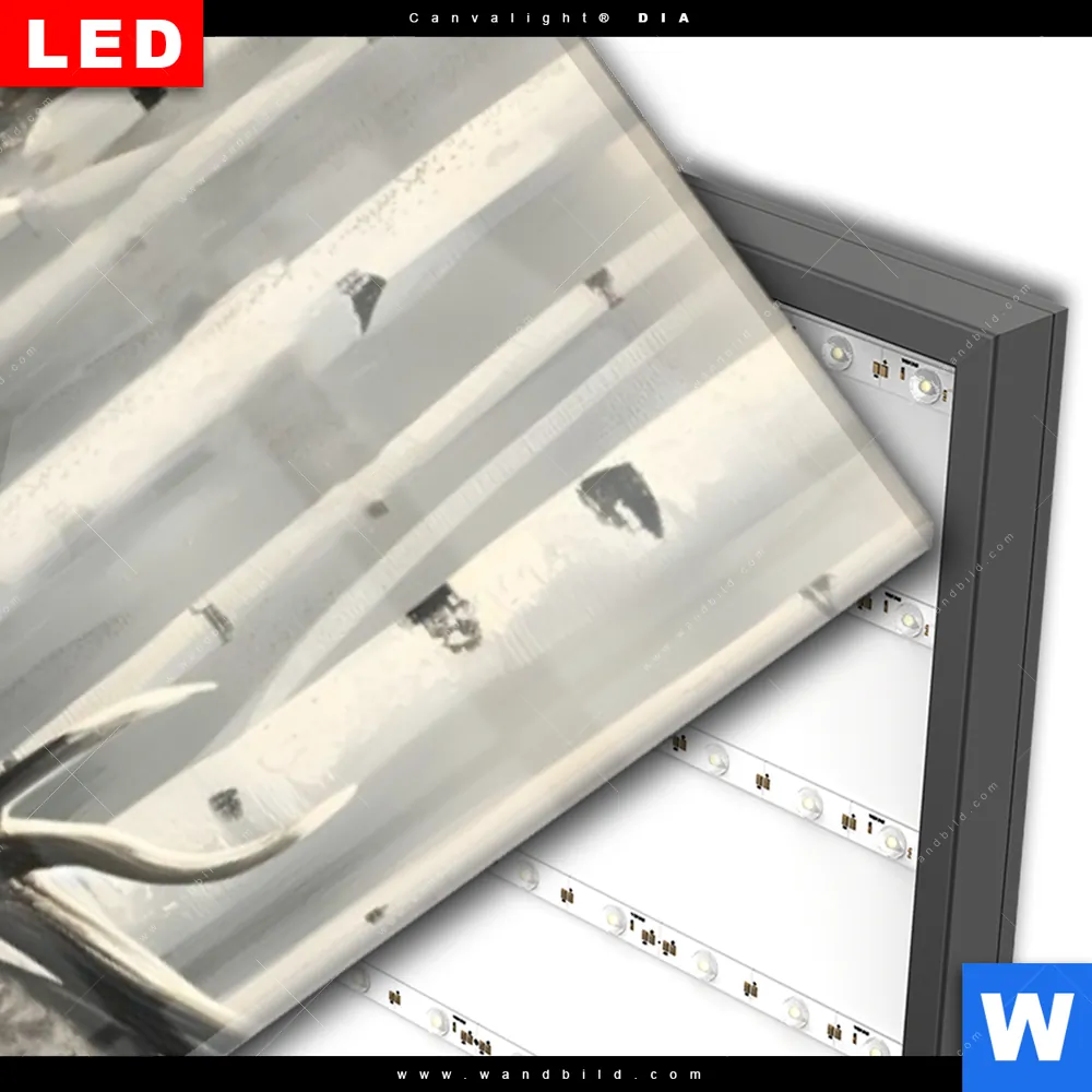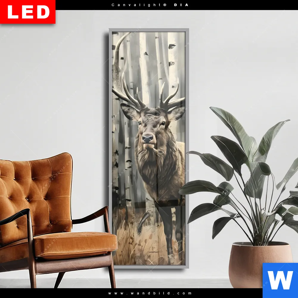 Wechselmotiv Acrylglas Canvalight® DIA | Hirsch im Birkenwald | Schmal