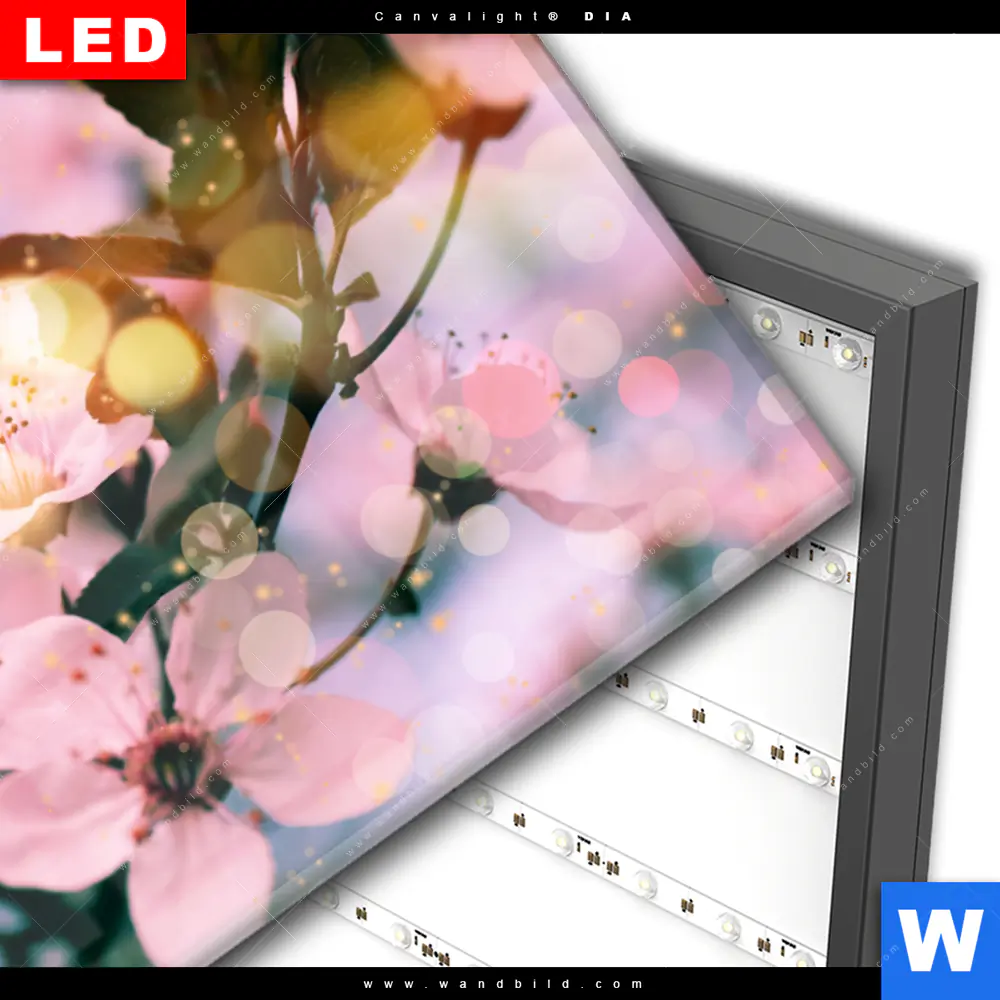 Wechselmotiv Acrylglas Canvalight® DIA | Kirschblüten im Frühlingslicht | Querformat