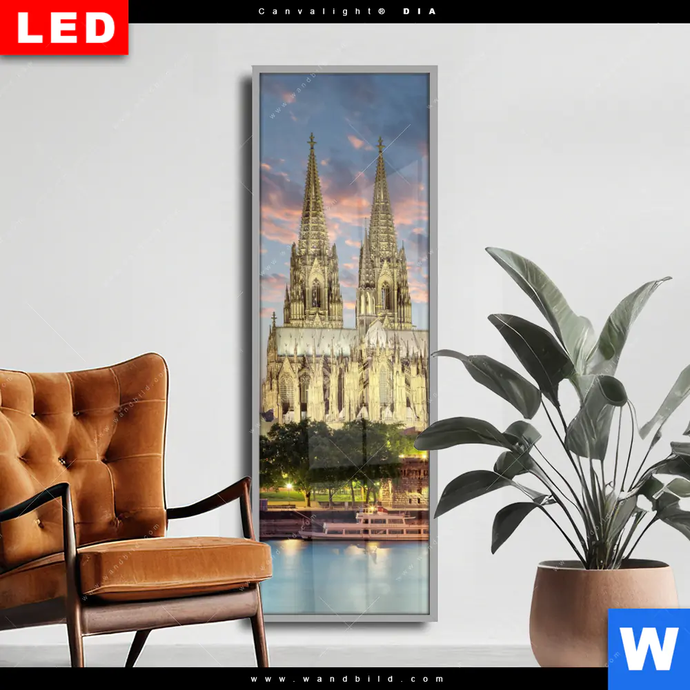 Wechselmotiv Acrylglas Canvalight® DIA | Kölner Dom bei Nacht | Schmal