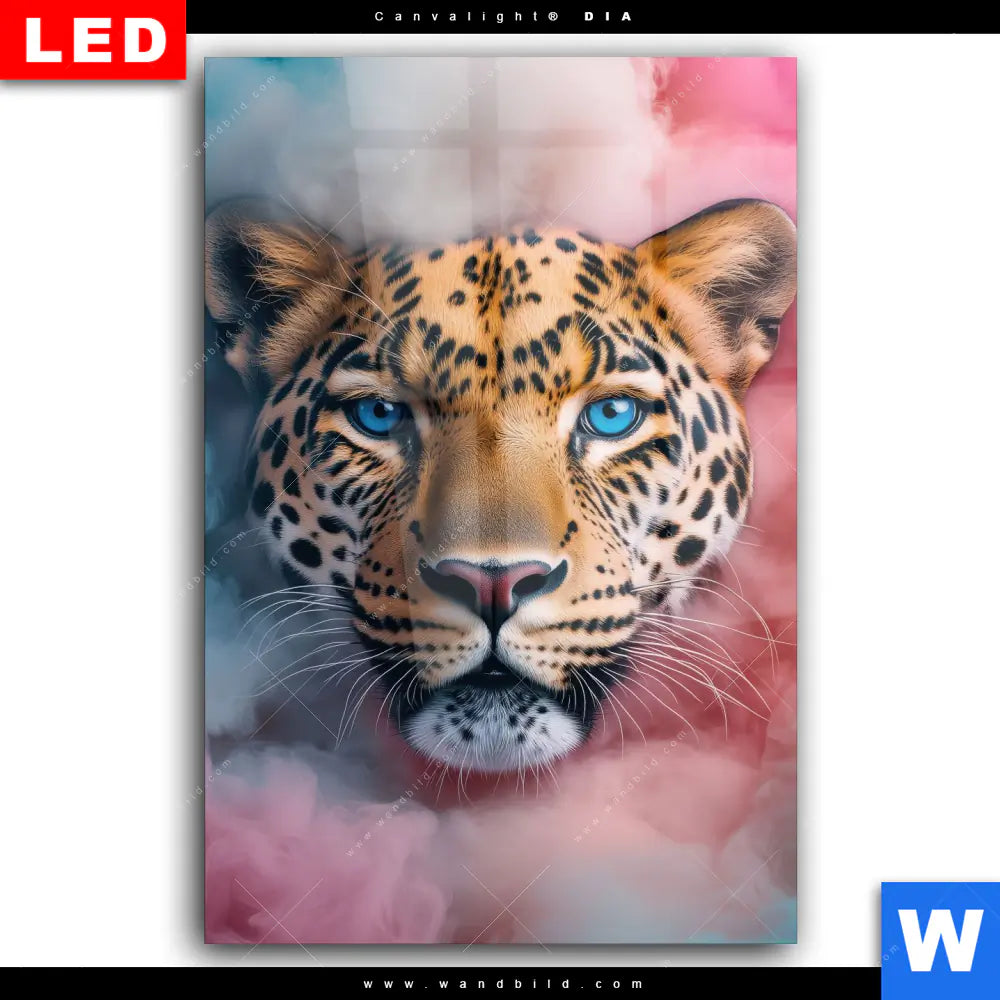 Wechselmotiv Acrylglas Canvalight® DIA | Leopard im Farbnebel | Hochformat