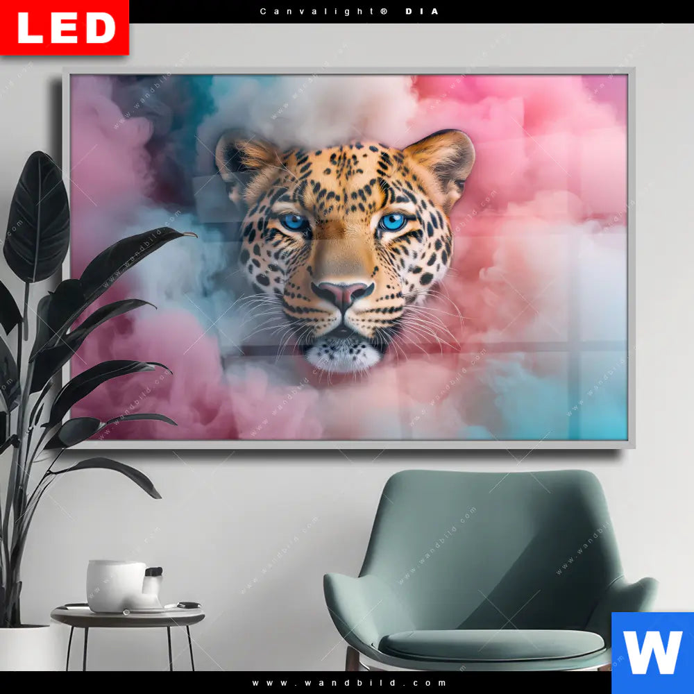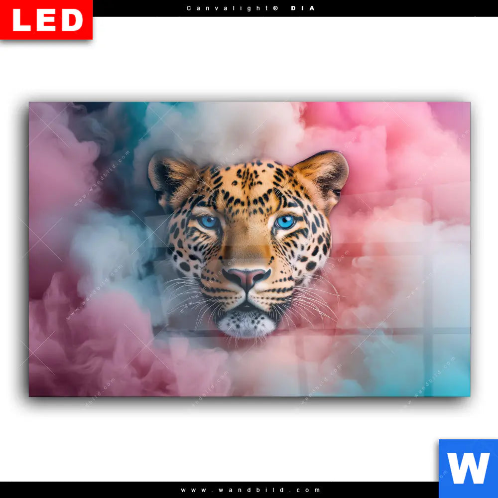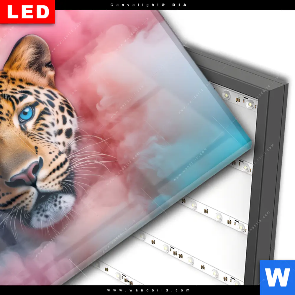 Wechselmotiv Acrylglas Canvalight® DIA | Leopard im Farbnebel | Querformat