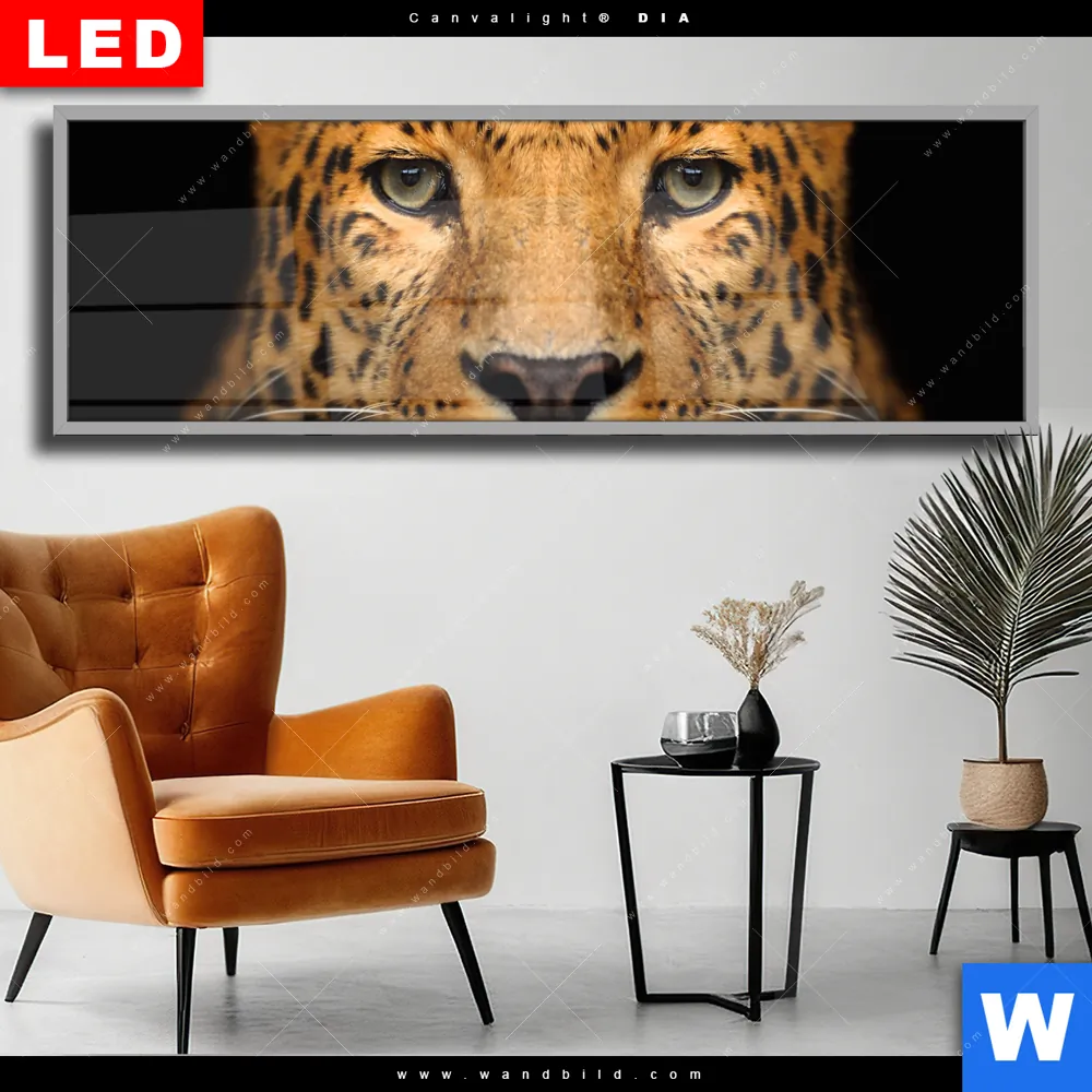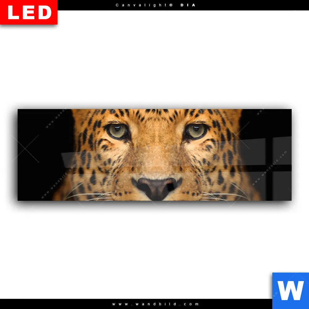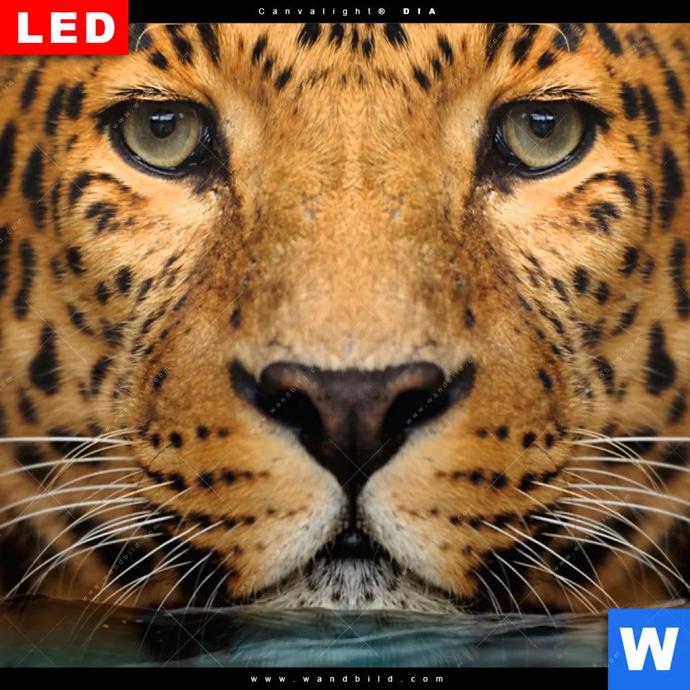 Wechselmotiv Acrylglas Canvalight® DIA | Leopard im Wasser | Panorama