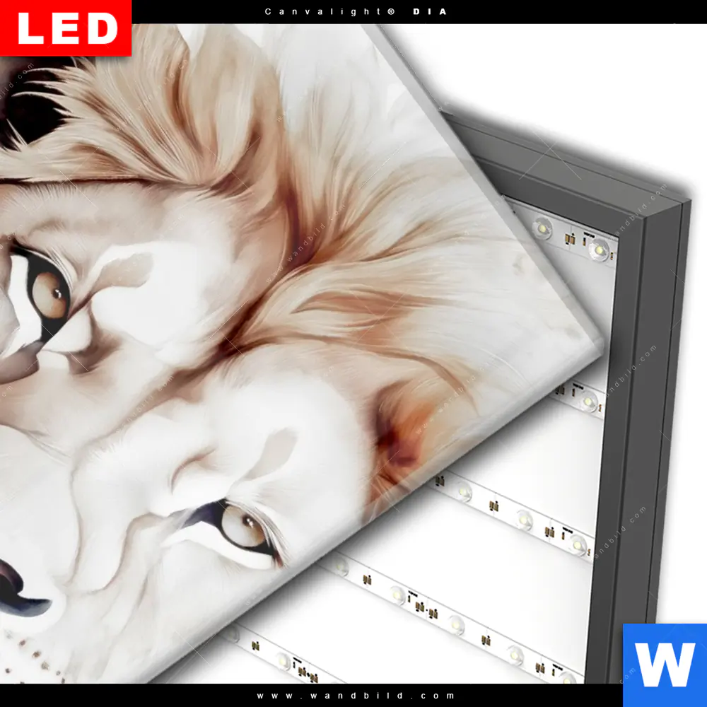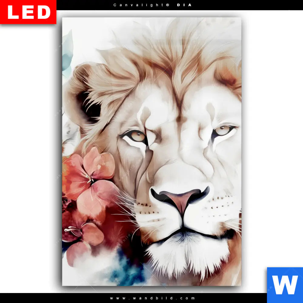 Wechselmotiv Acrylglas Canvalight® DIA | Löwe mit Blumen | Hochformat