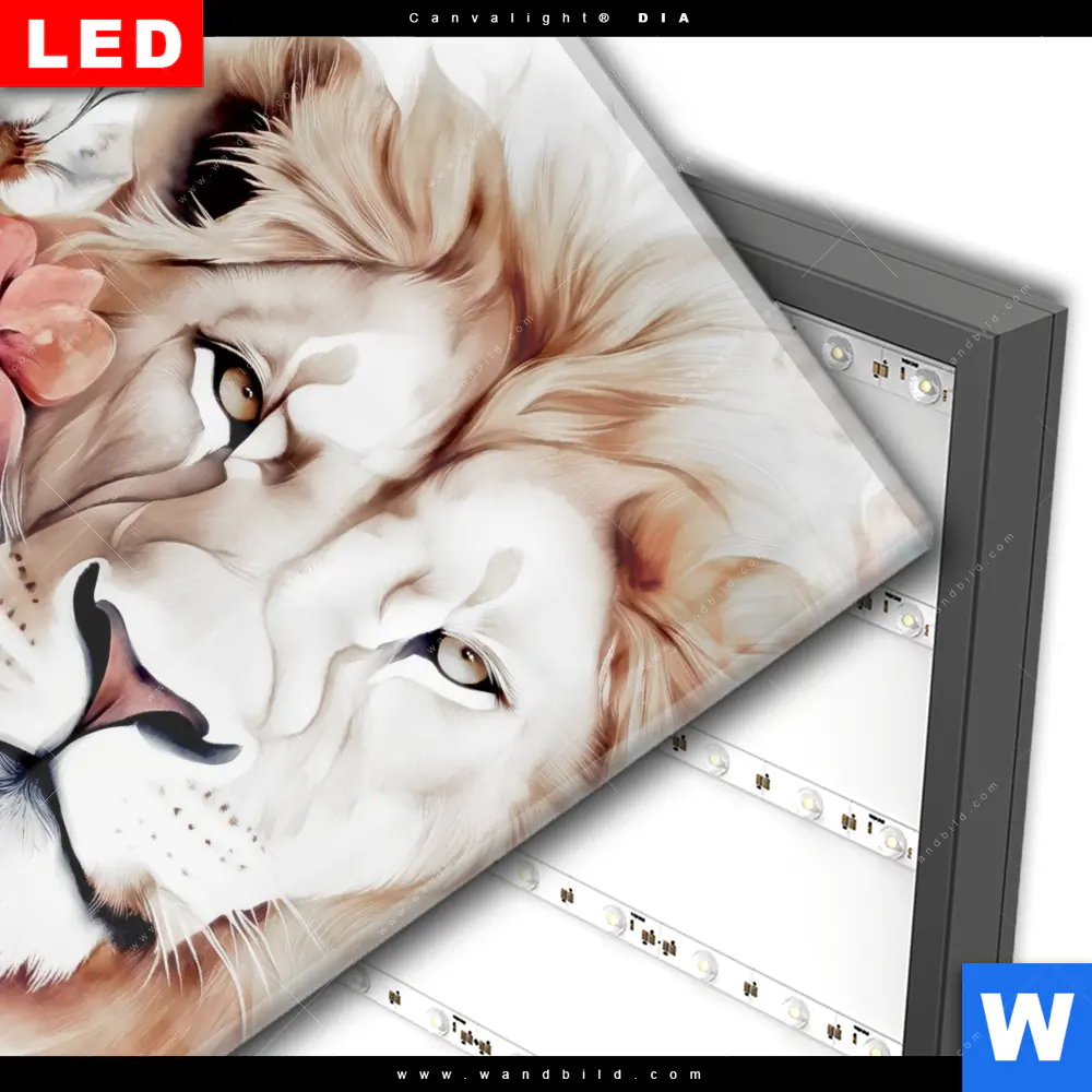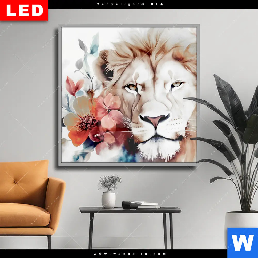 Wechselmotiv Acrylglas Canvalight® DIA | Löwe mit Blumen | Quadrat