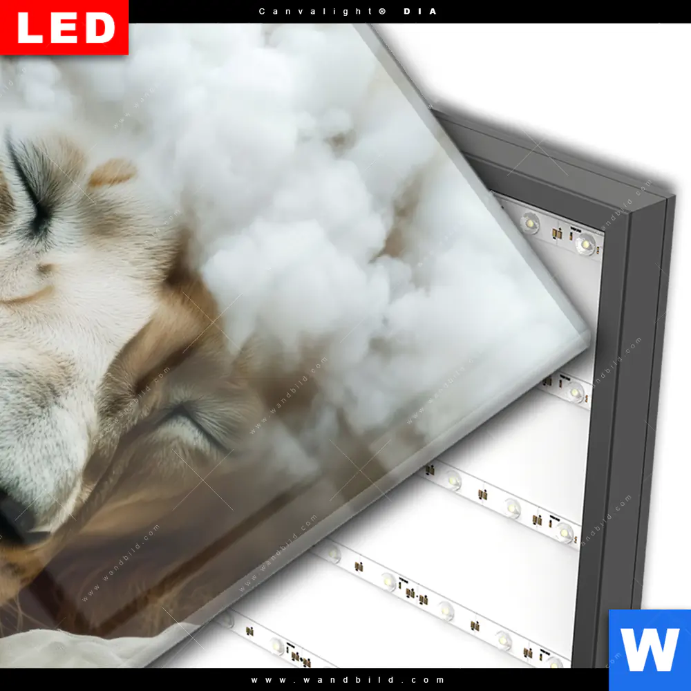 Wechselmotiv Acrylglas Canvalight® DIA | Löwe sanft umhüllt | Hochformat