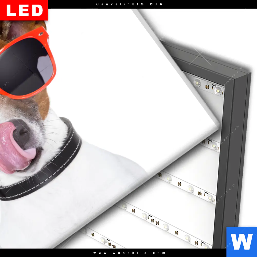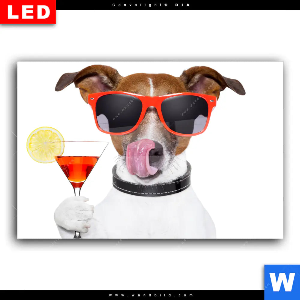 Wechselmotiv Acrylglas Canvalight® DIA | Lustiger Hund mit Drink | Querformat