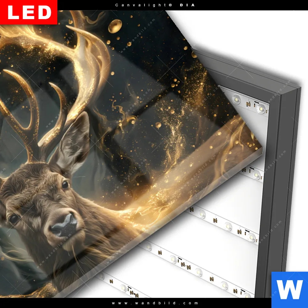 Wechselmotiv Acrylglas Canvalight® DIA | Magischer Hirsch im Sternenlicht | Querformat