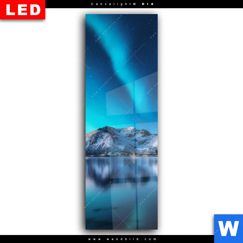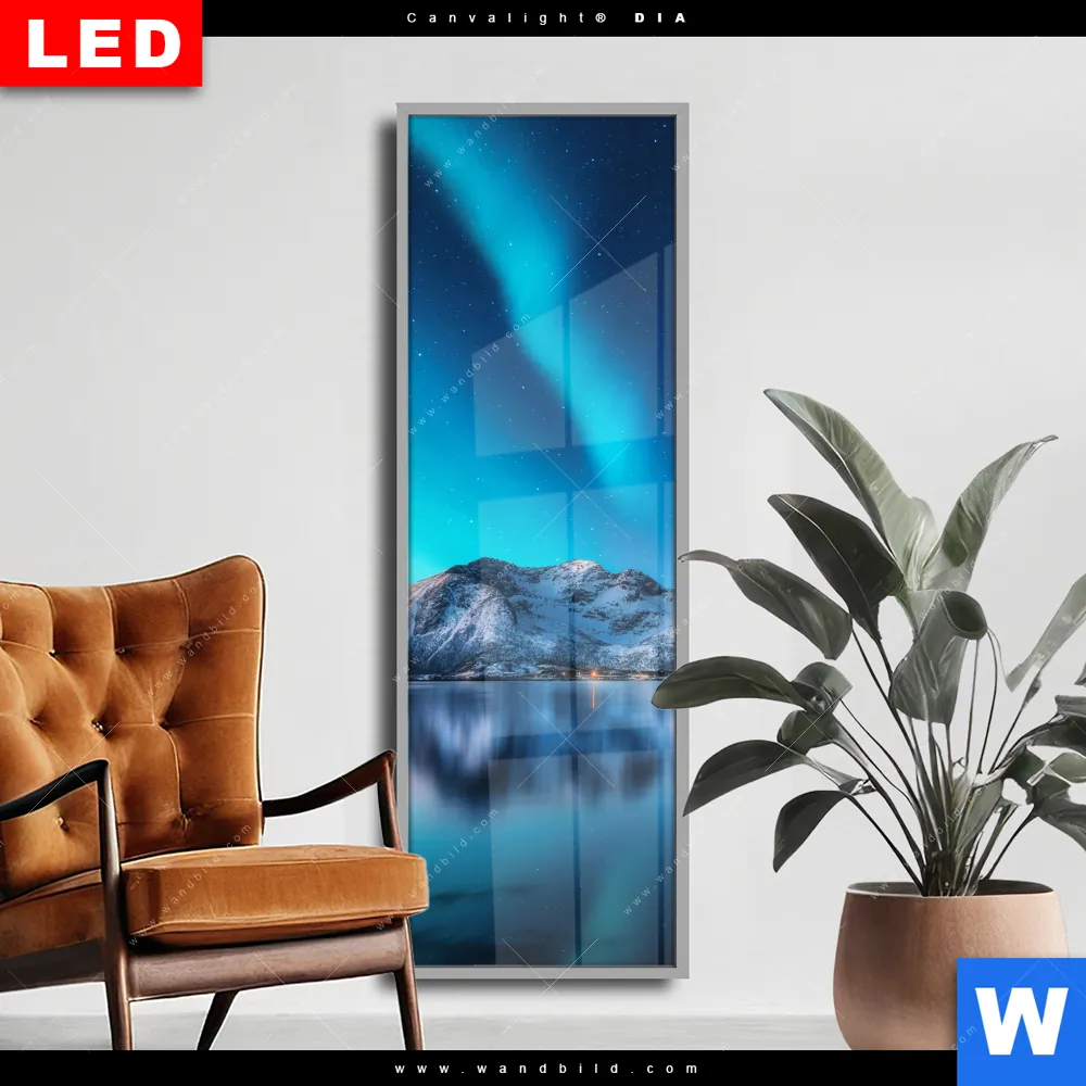 Wechselmotiv Acrylglas Canvalight® DIA | Nordlichter und schneebedeckte Berge | Schmal