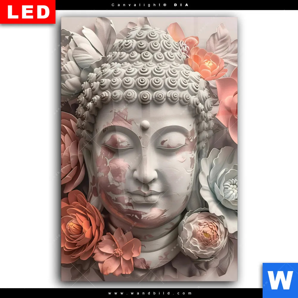 Wechselmotiv Acrylglas Canvalight® DIA | Pastellblüten und Buddha | Hochformat