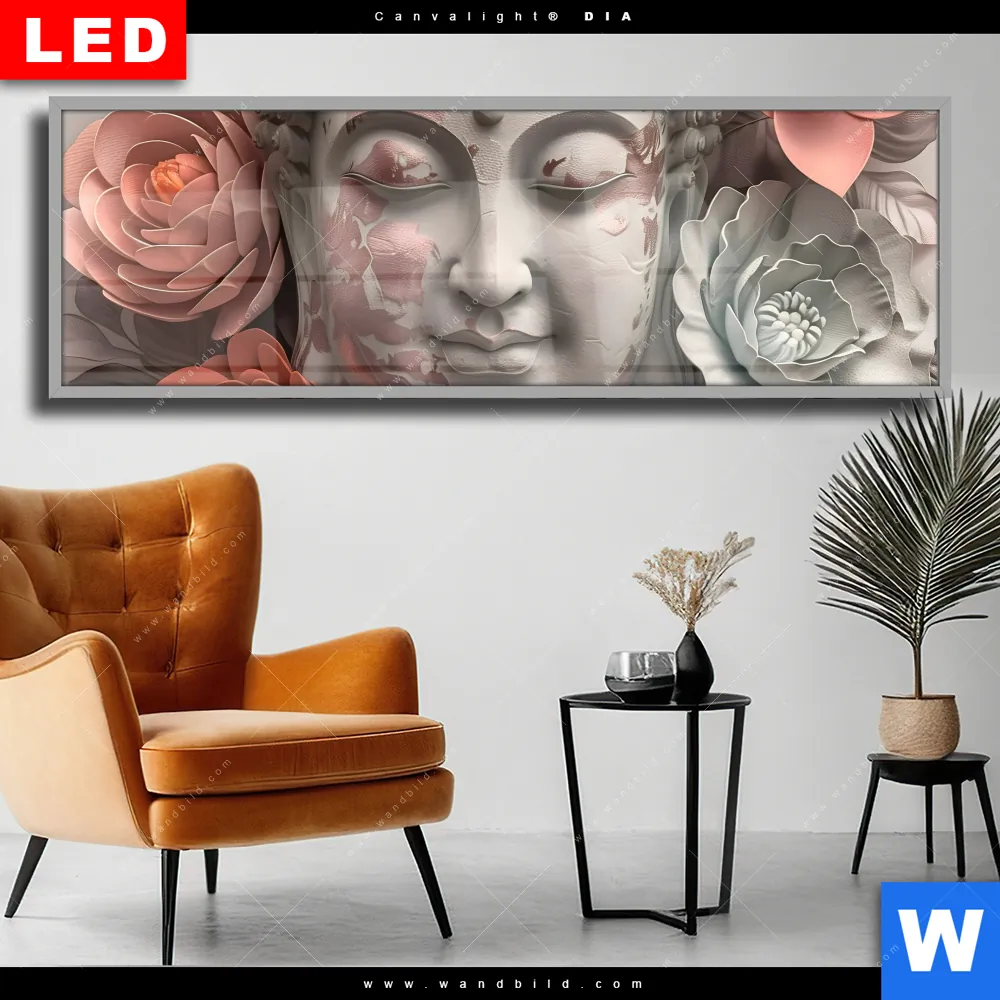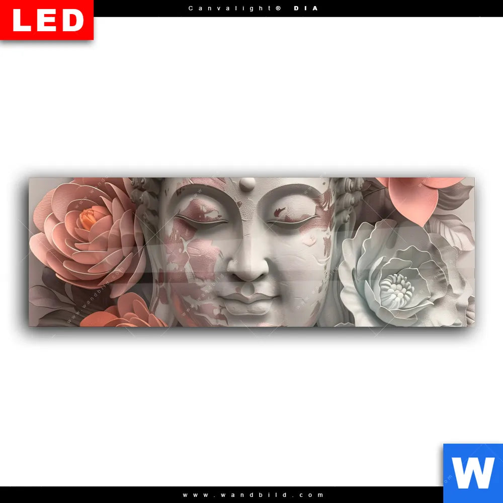 Wechselmotiv Acrylglas Canvalight® DIA | Pastellblüten und Buddha | Panorama