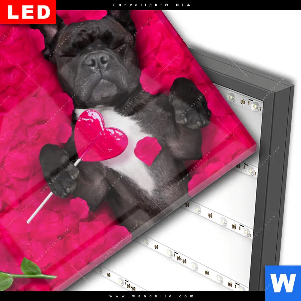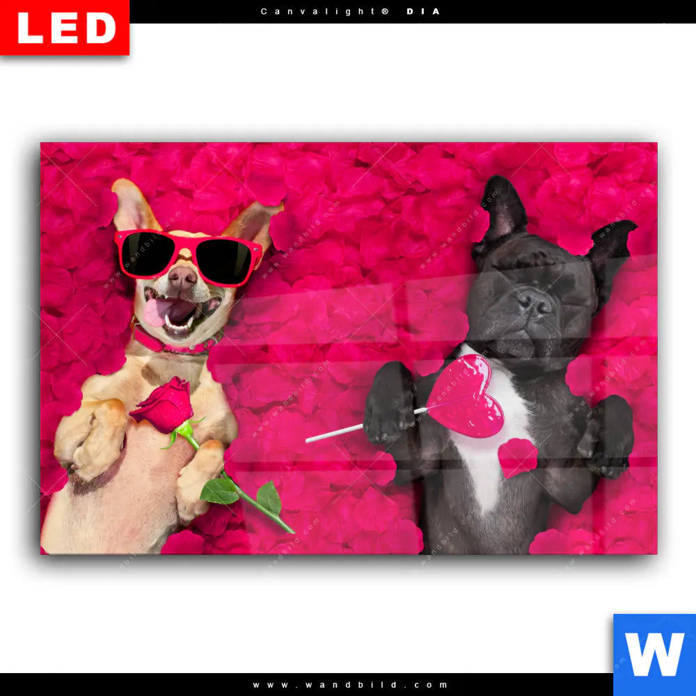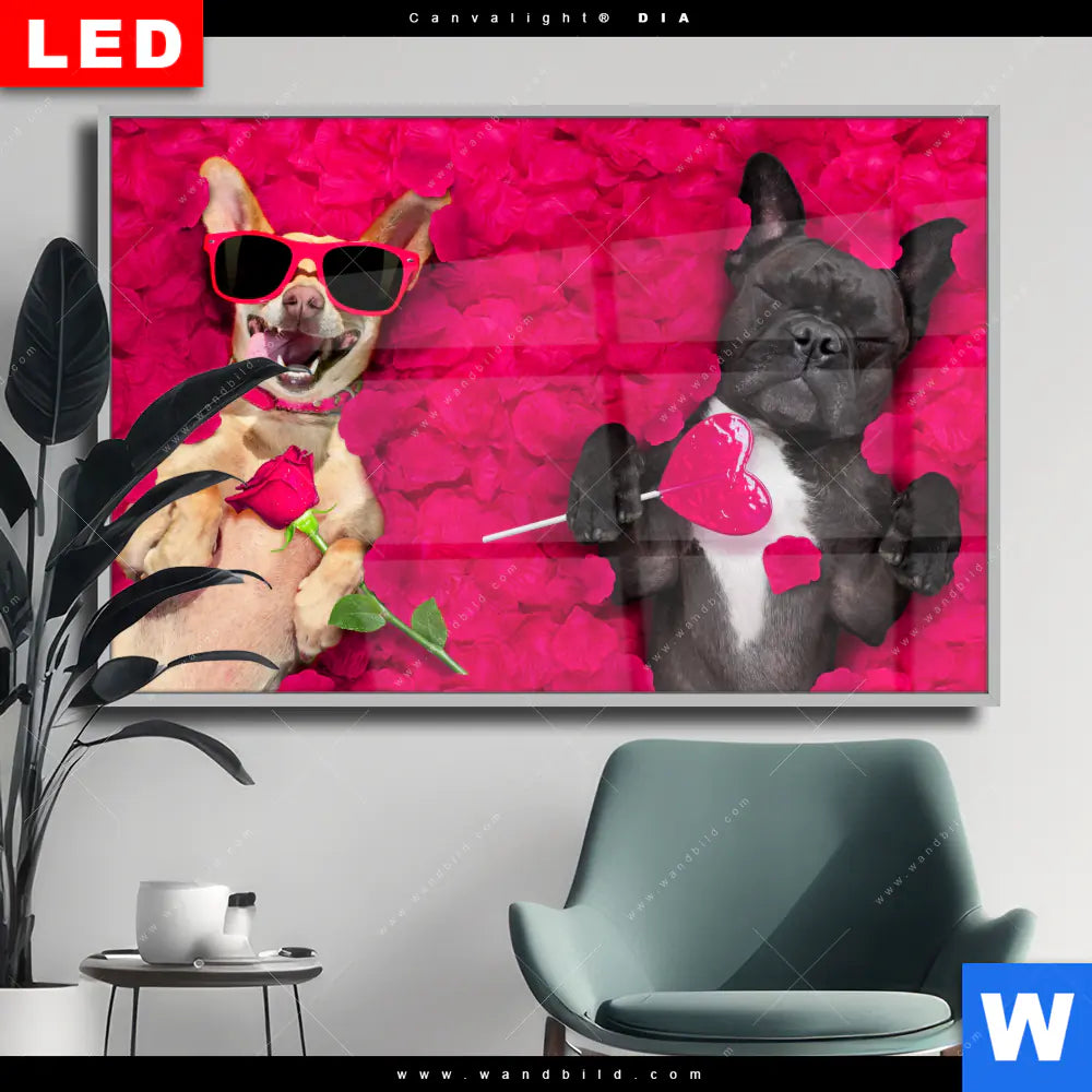 Wechselmotiv Acrylglas Canvalight® DIA | Romantik mit süßen Hunden | Querformat