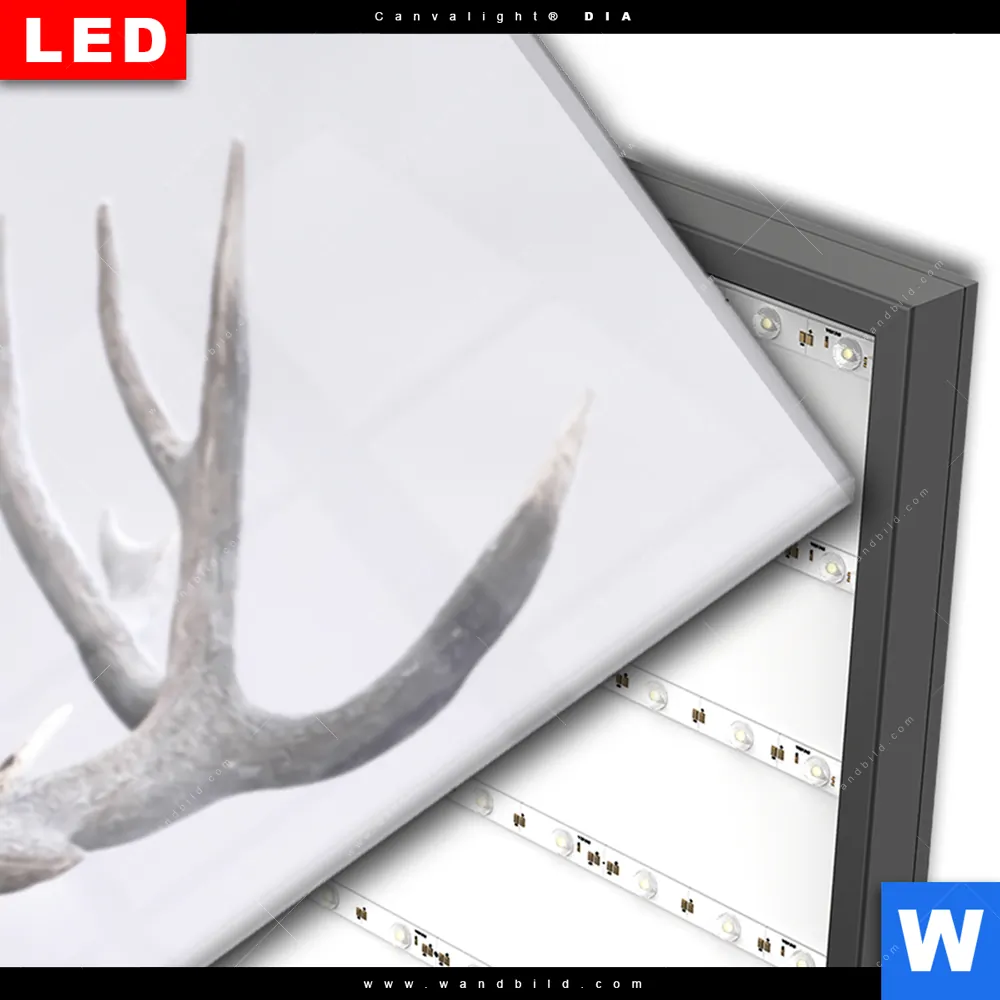 Wechselmotiv Acrylglas Canvalight® DIA | Rothirsch im Winter | Schmal