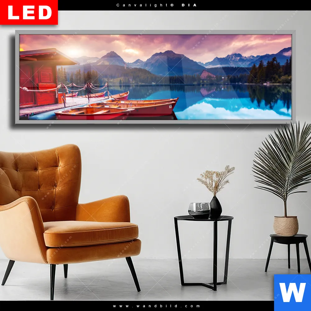 Wechselmotiv Acrylglas Canvalight® DIA | Ruhiger Bergsee | Panorama