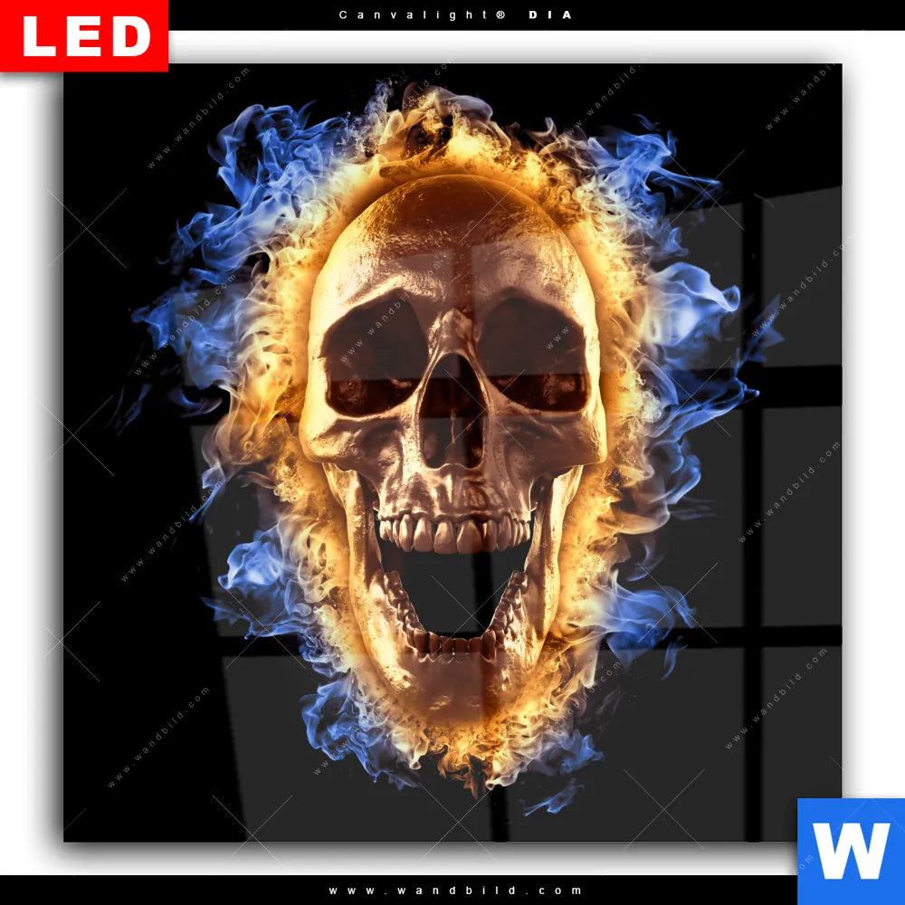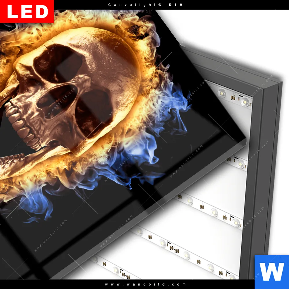 Wechselmotiv Acrylglas Canvalight® DIA | Schädel in Flammen | Quadrat