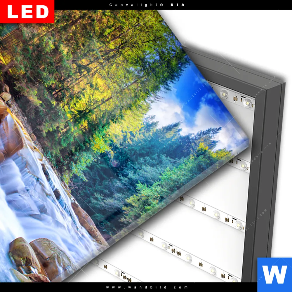 Wechselmotiv Acrylglas Canvalight® DIA | Schöner Wasserfall im Wald | Hochformat