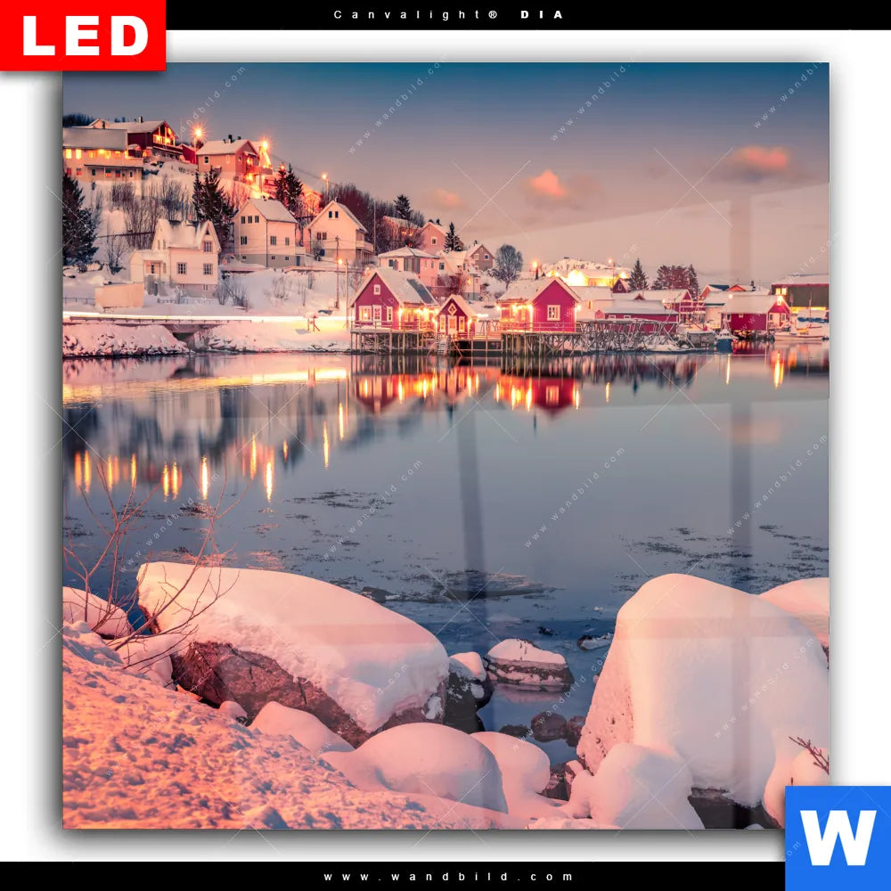 Wechselmotiv Acrylglas Canvalight® DIA | Skandinavische Stadt bei Nacht | Quadrat