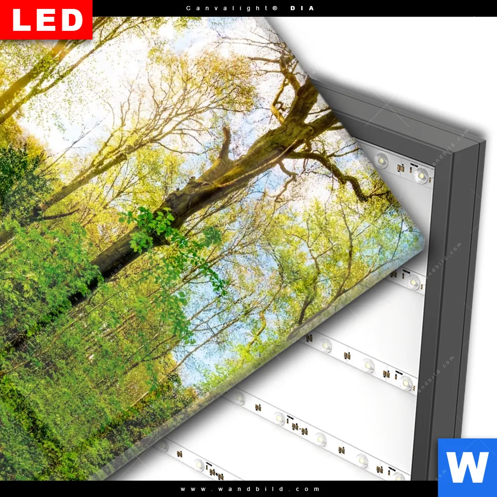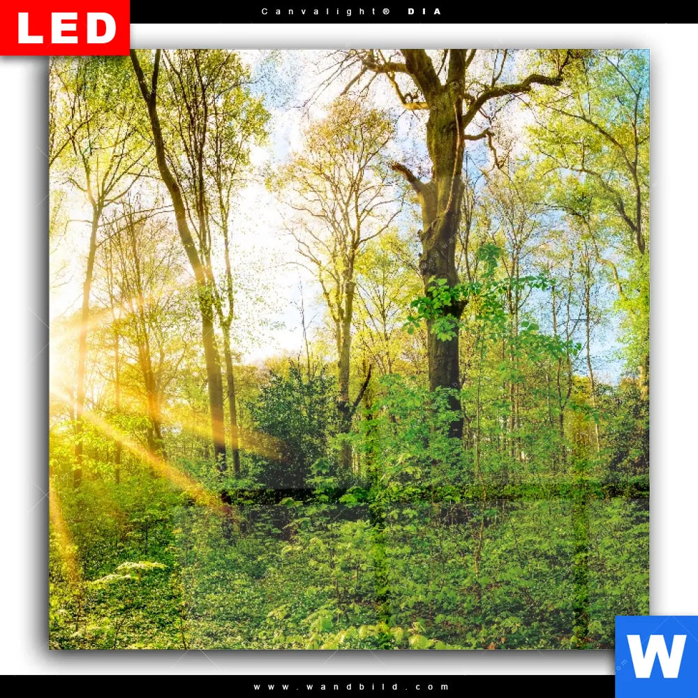 Wechselmotiv Acrylglas Canvalight® DIA | Sonnenlicht im Wald | Quadrat