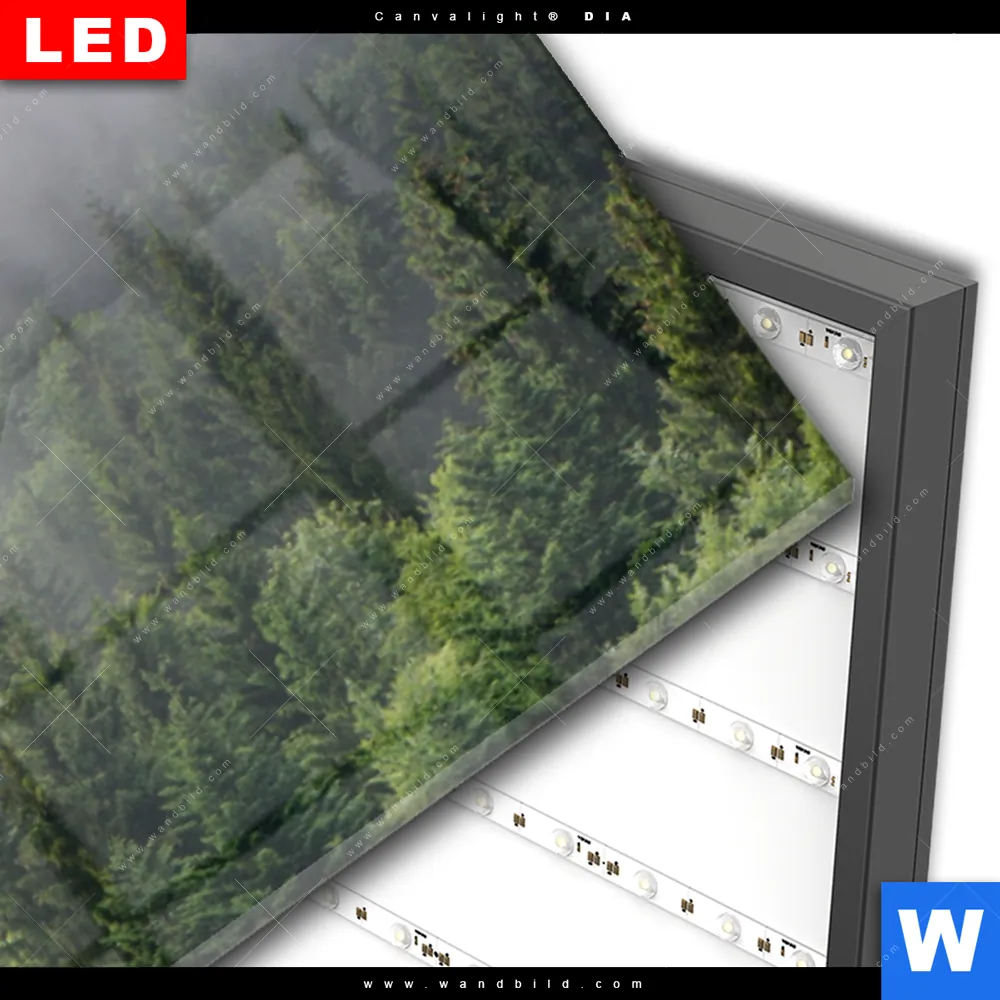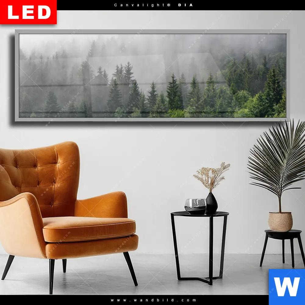 Wechselmotiv Acrylglas Canvalight® DIA | Wald im Nebel | Panorama