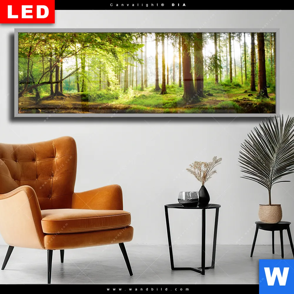 Wechselmotiv Acrylglas Canvalight® DIA | Waldbach im Sonnenschein | Panorama