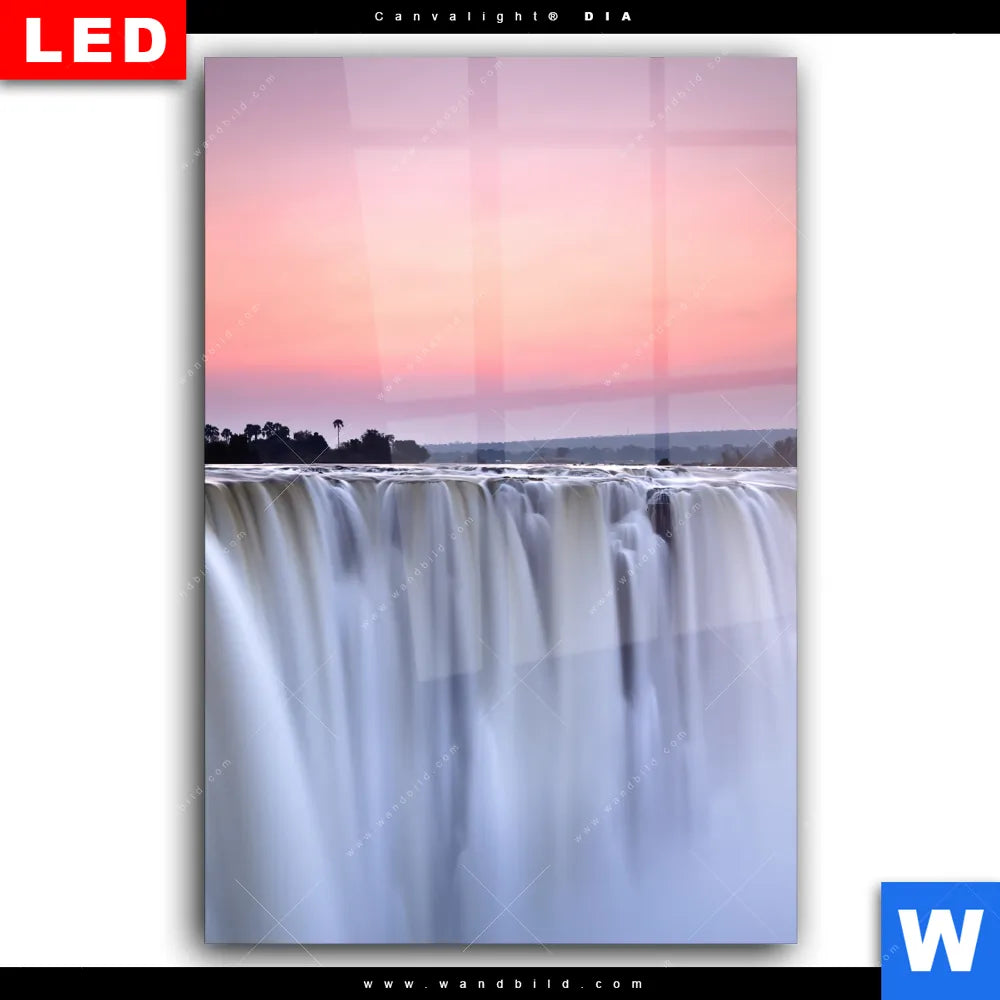 Wechselmotiv Acrylglas Canvalight® DIA | Wasserfall bei Abendröte | Hochformat