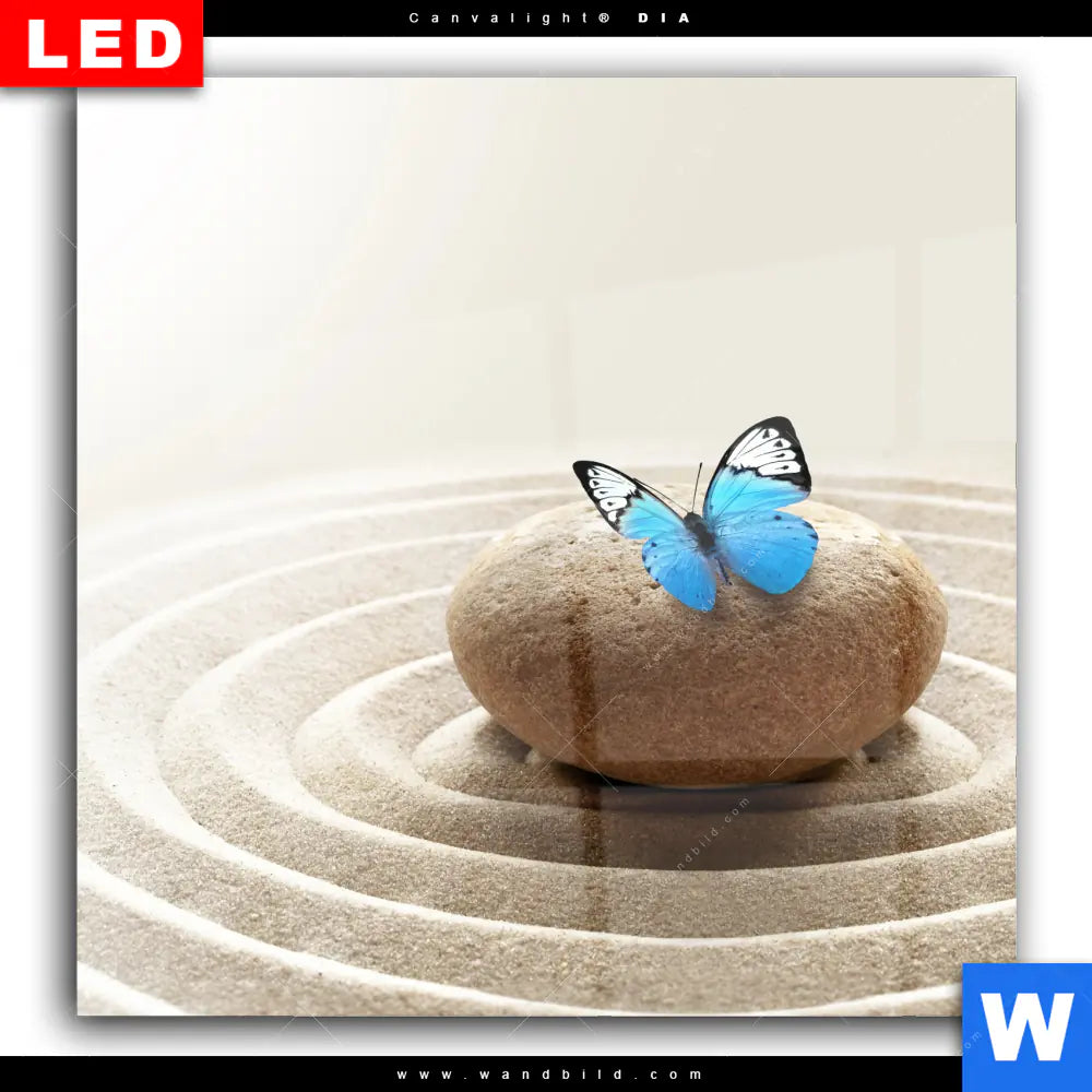 Wechselmotiv Acrylglas Canvalight® DIA | Zen Stein mit Schmetterling | Quadrat