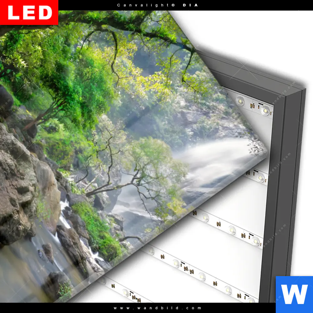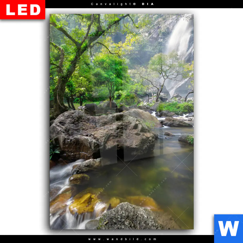 Wechselmotiv Acrylglas Canvalight® DIA | Felsenbach im Regenwald | Hochformat