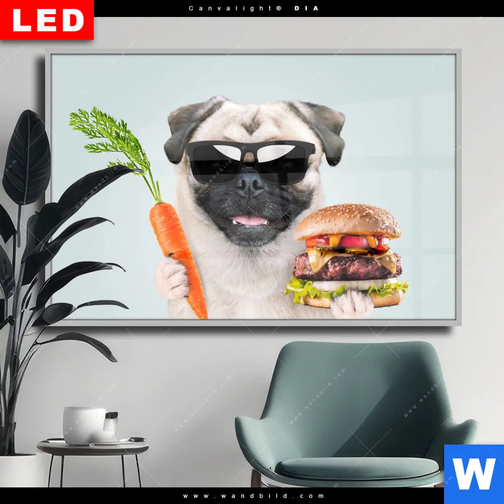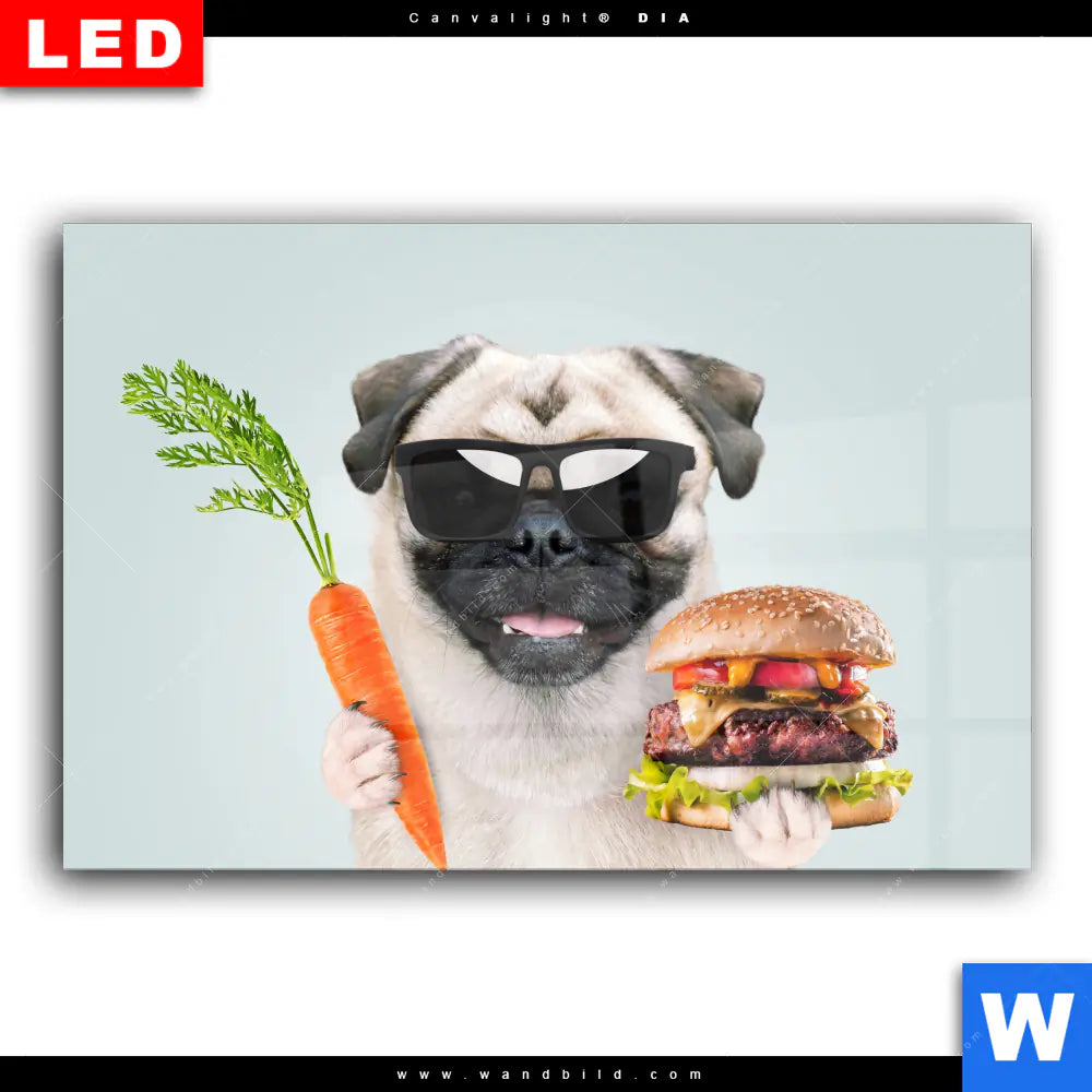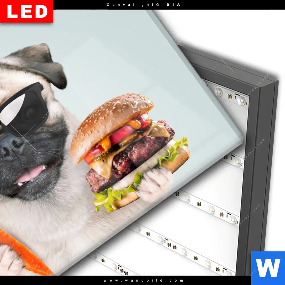 Wechselmotiv Acrylglas Canvalight® DIA | Lustiger Hund mit Burger | Querformat