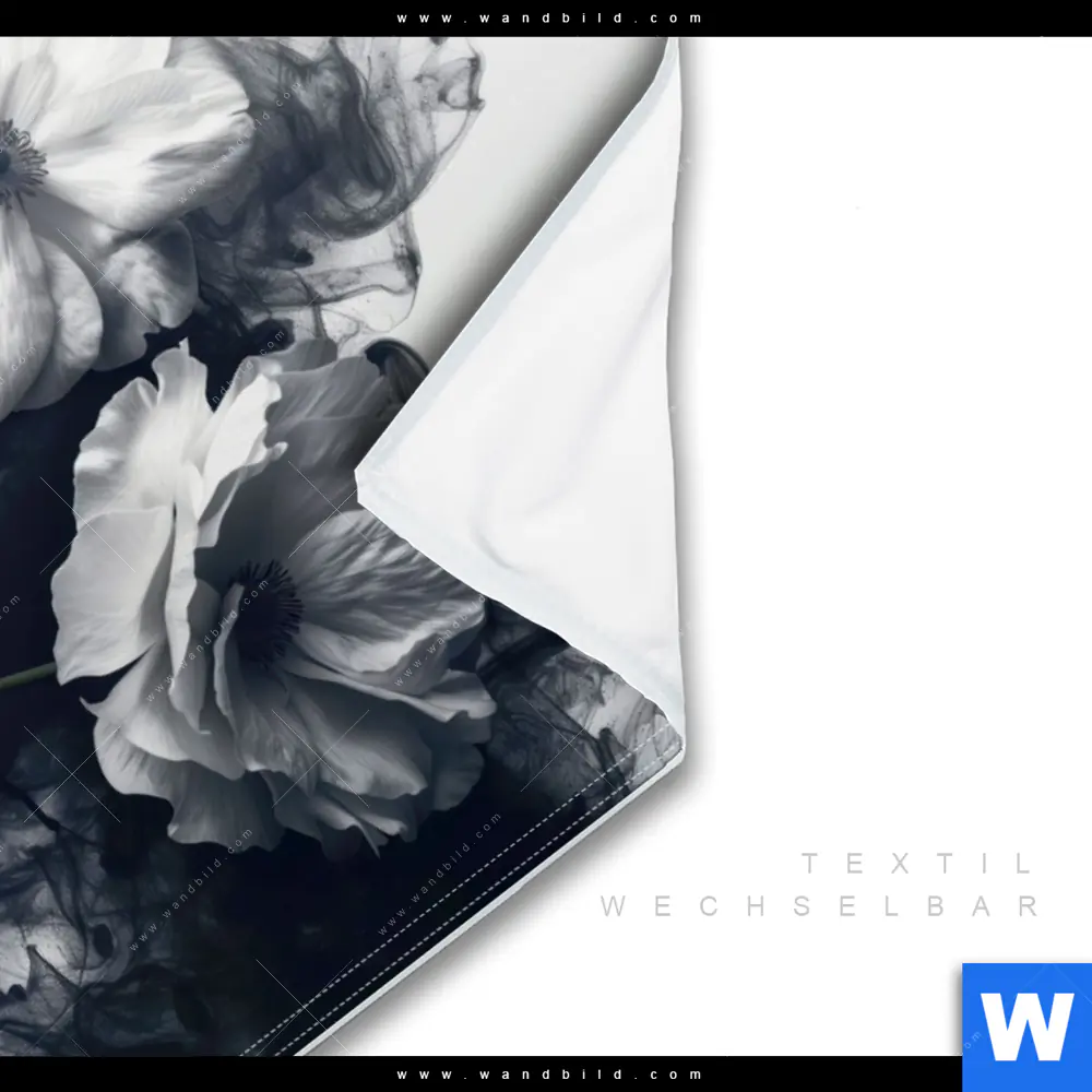 Wechselmotiv Textil | Blumen im schwarzen Farbnebel | Querformat