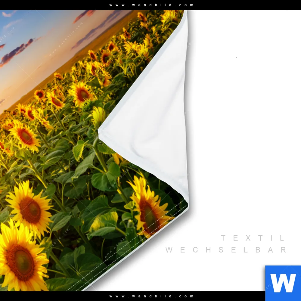 Wechselmotiv Textil | Leuchtend gelbe Sonnenblumen am Abend | Querformat