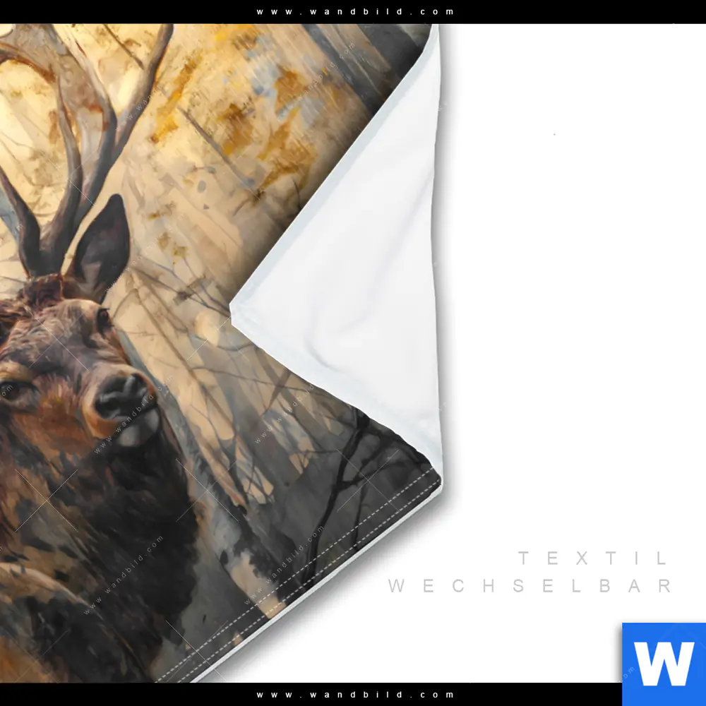 Wechselmotiv Textil | Hirsch im Morgenlicht | Querformat