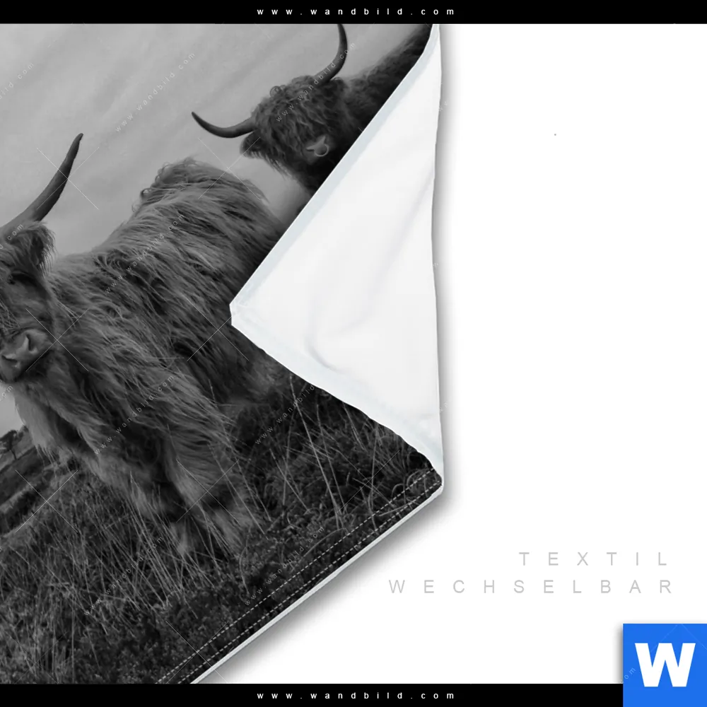 Wechselmotiv Textil | Hochland-Rind Schwarz-Weiß | Quadrat