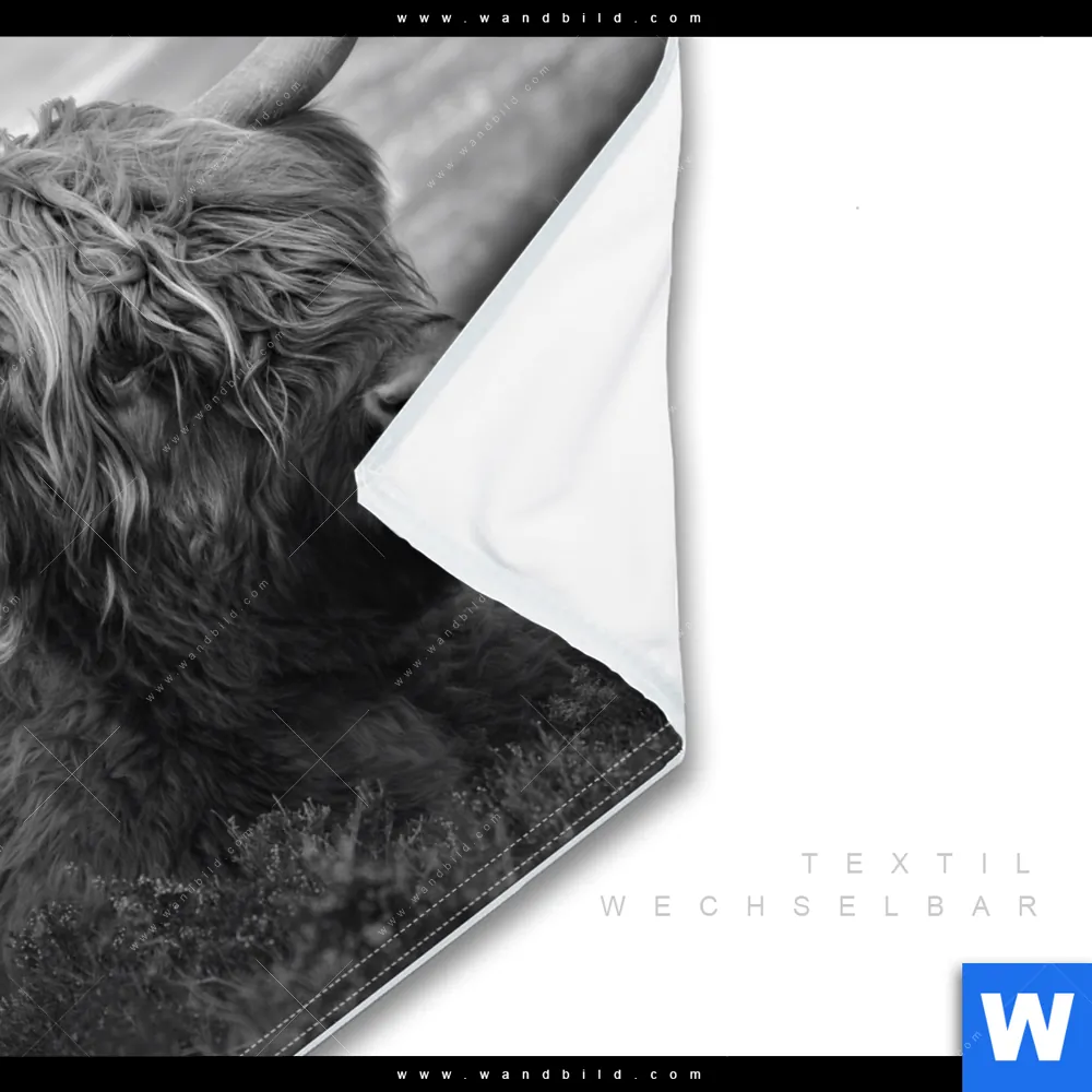 Wechselmotiv Textil | Hochland-Rind Schwarz-Weiß No. 2 | Quadrat
