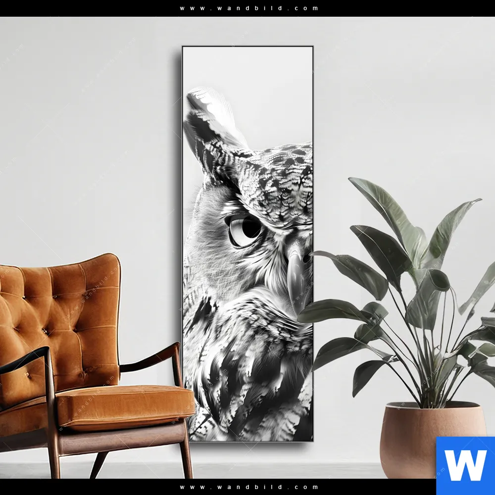 Wechselmotiv | Schwarz-Weiß Eulenportrait | Schmal