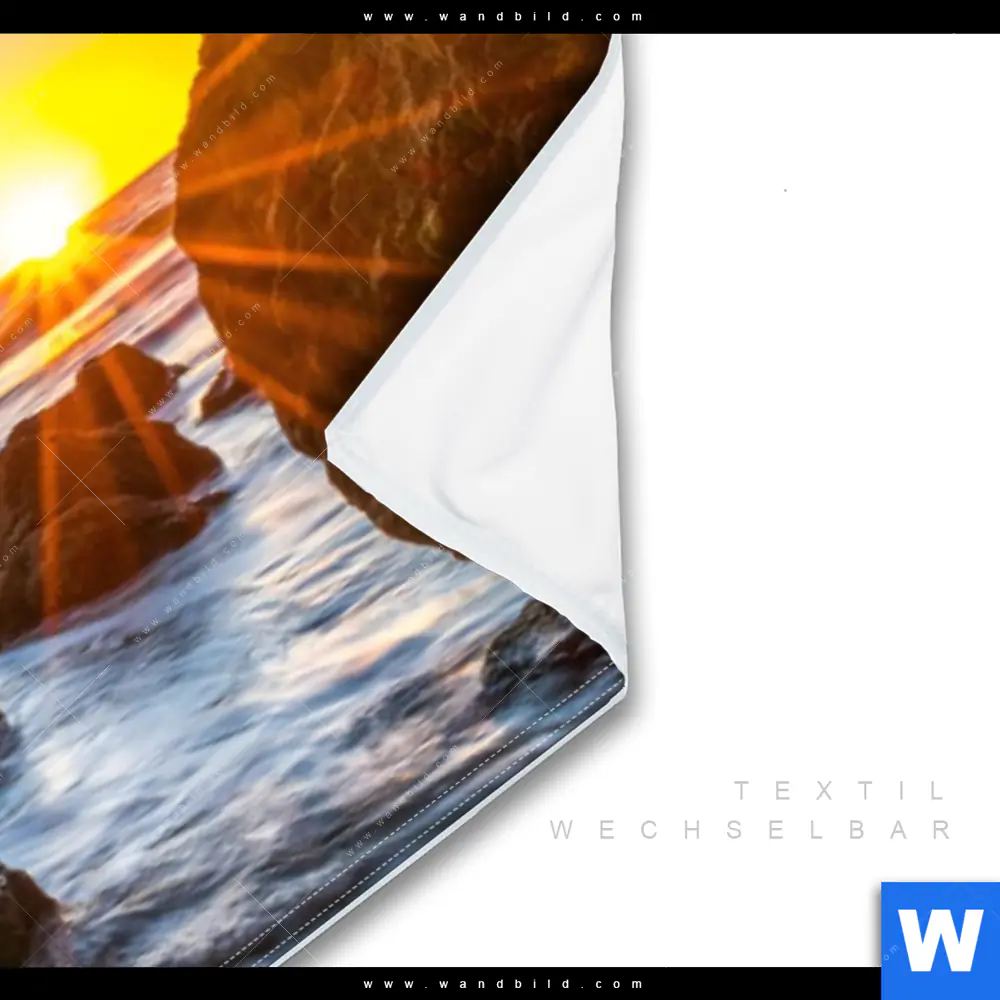 Wechselmotiv Textil | Sonnenuntergang in Meeresgrotte | Panorama