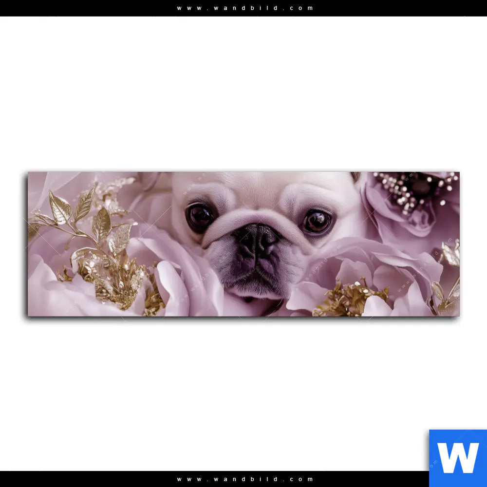 Wechselmotiv Textil | Mops im Blütenmeer | Panorama