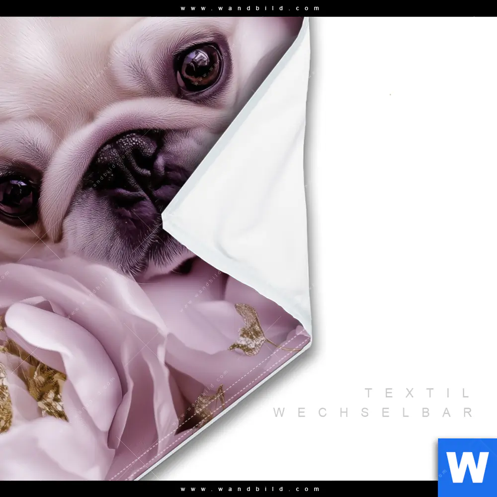 Wechselmotiv Textil | Mops im Blütenmeer | Quadrat