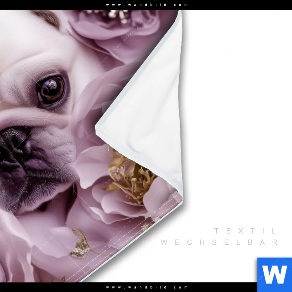 Wechselmotiv Textil | Mops im Blütenmeer | Querformat