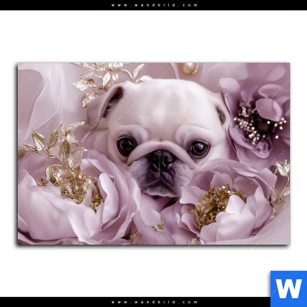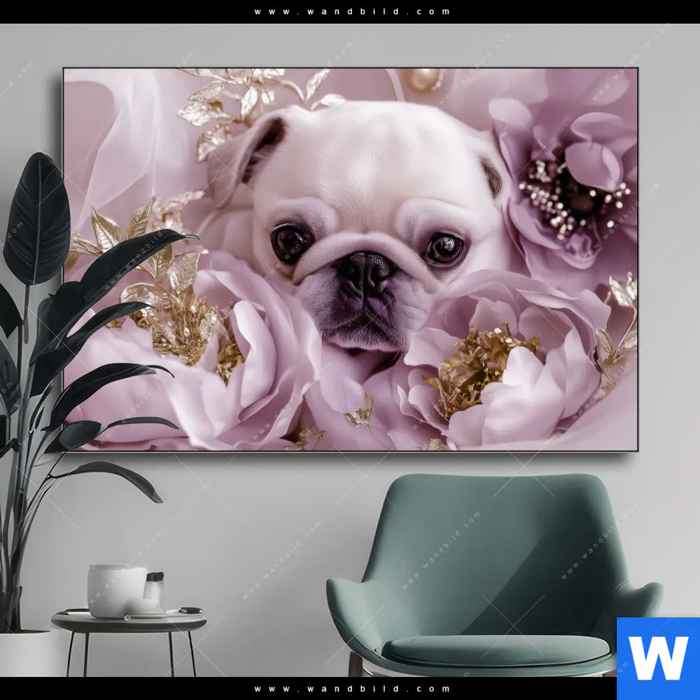 Wechselmotiv | Mops im Blütenmeer | Querformat