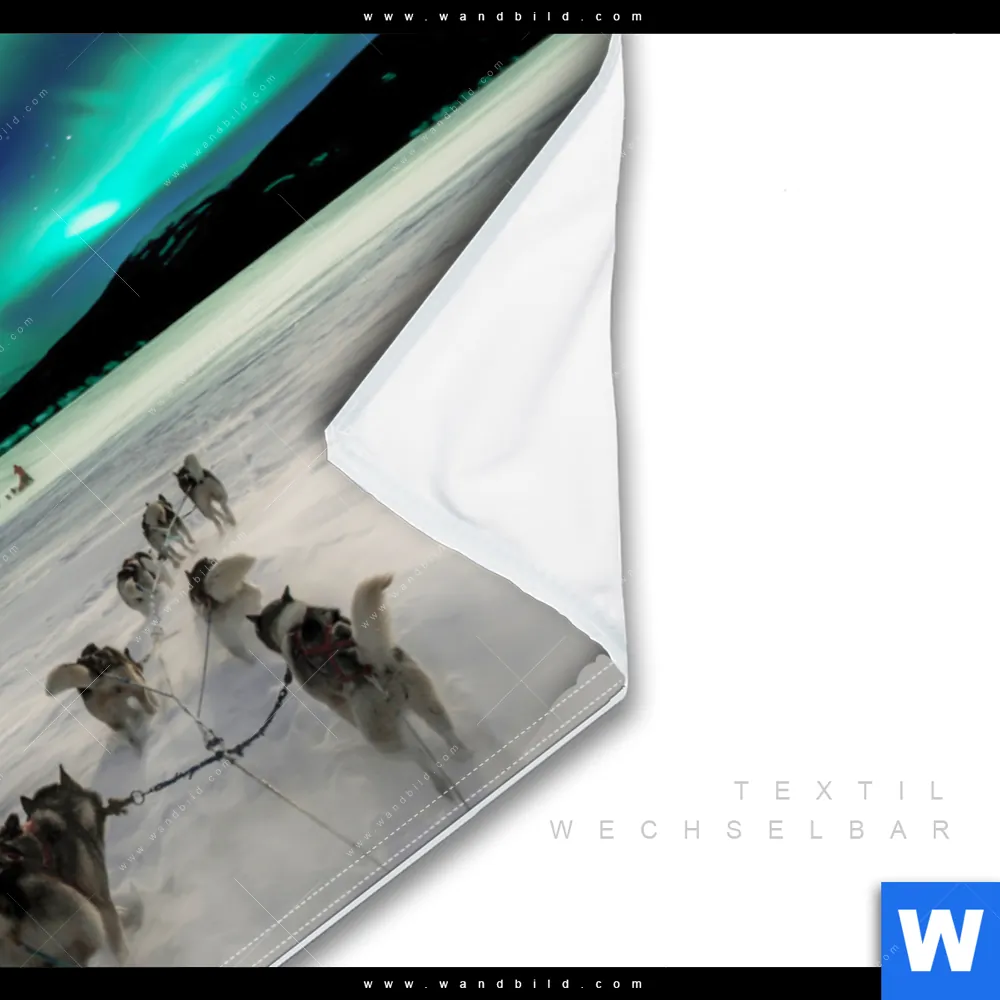 Wechselmotiv Textil | Nordlichter und Schlittenhunde | Querformat