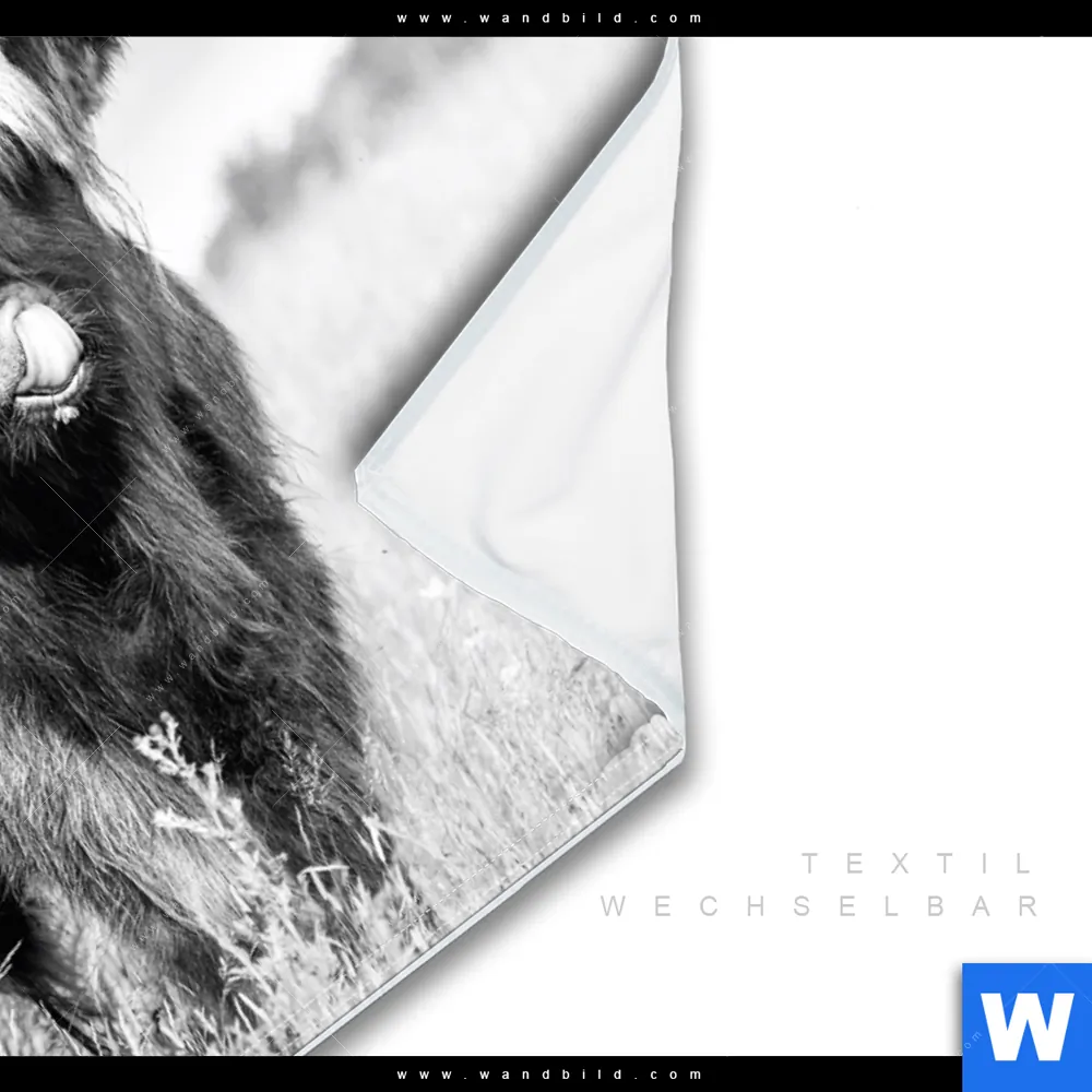 Wechselmotiv Textil | Hochlandkuh auf einer Wiese | Querformat