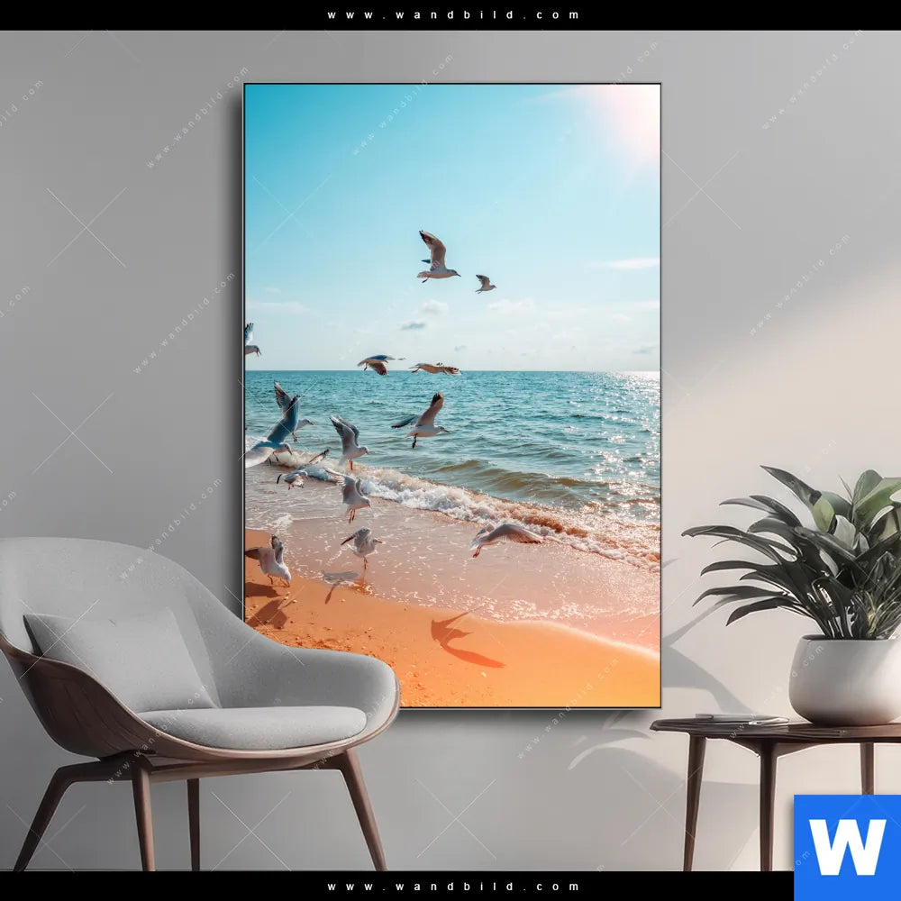 Wechselmotiv Textil | Möwen am Strand | Hochformat