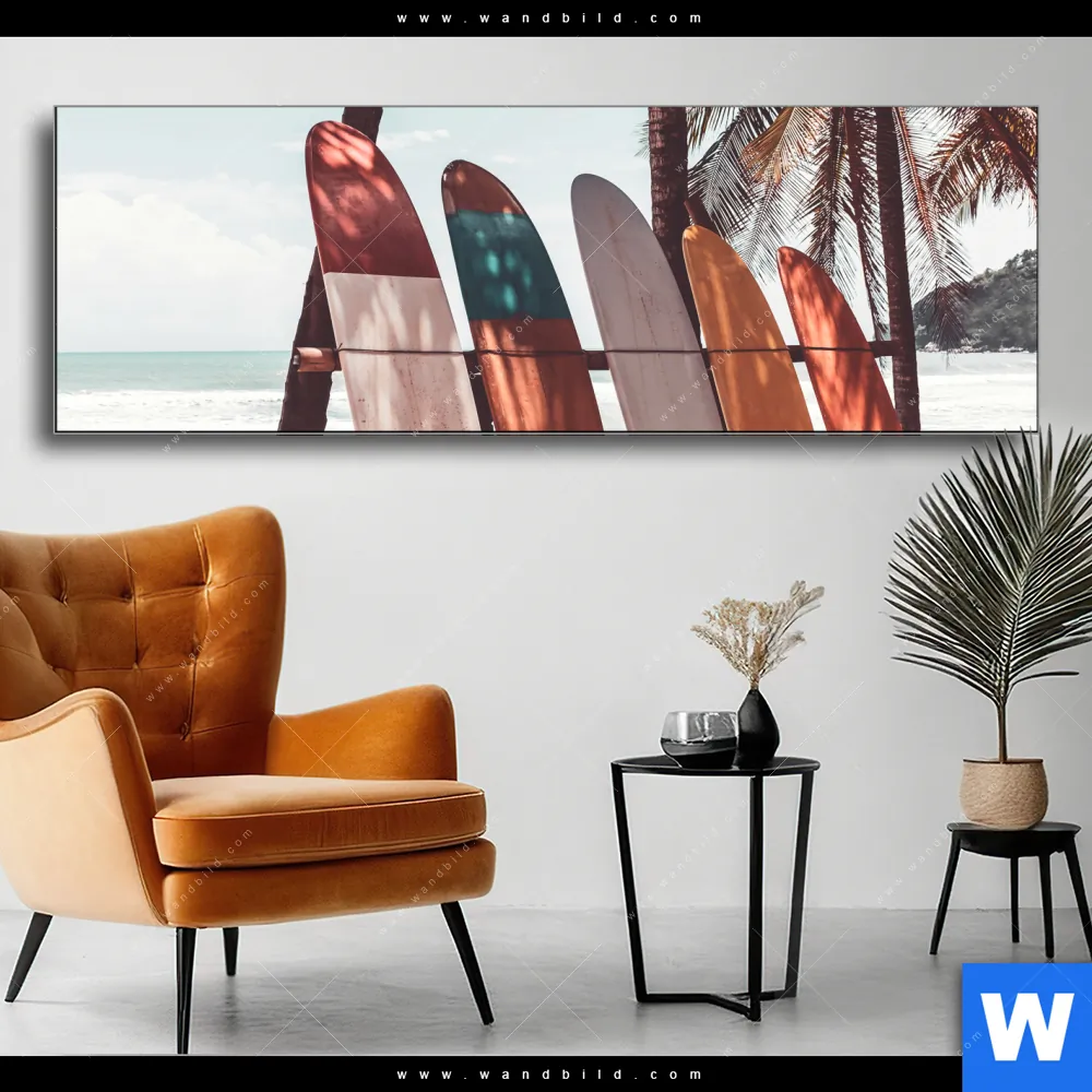 Wechselmotiv | Surfbretter und Palmen | Panorama