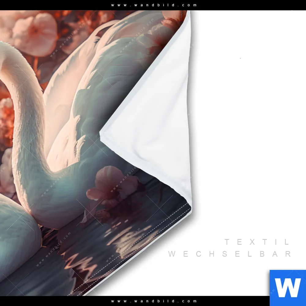 Wechselmotiv Textil | Zwei Schwäne im Wasser | Querformat