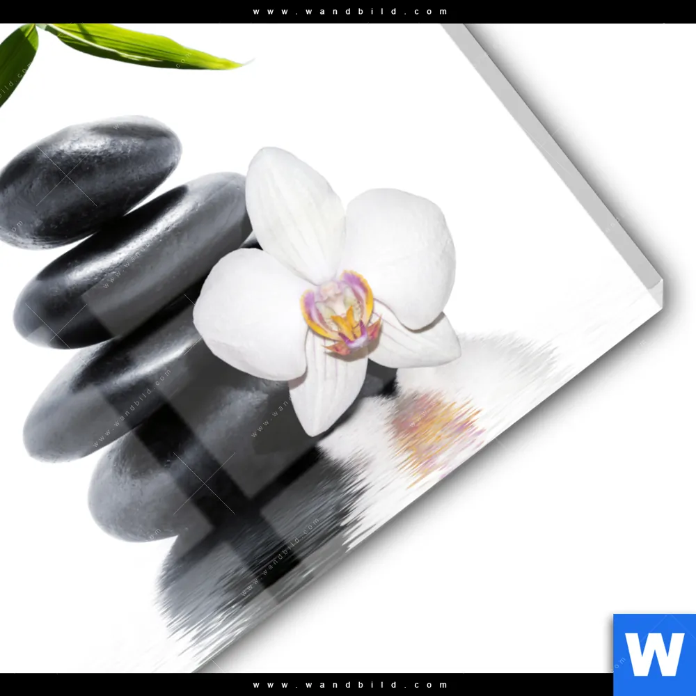 Acrylglasbild | Weiße Orchidee & Zensteine | Quadrat